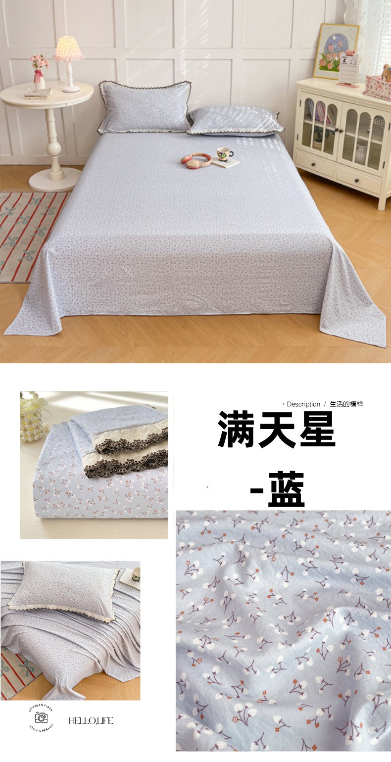 • 91家纺网 家纺一手货源 找家纺 圣比熊 2026新款A类云朵棉床单亲肤四季款席梦思床罩全包床单三件套 小星愿