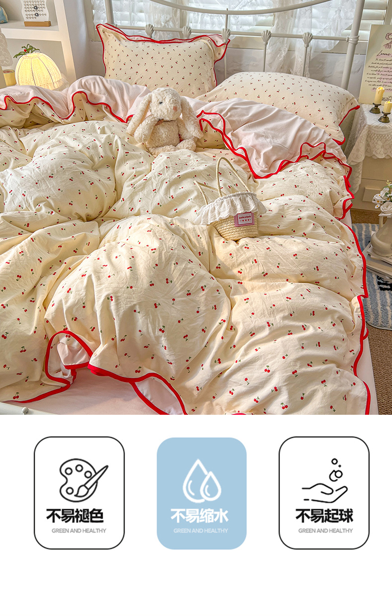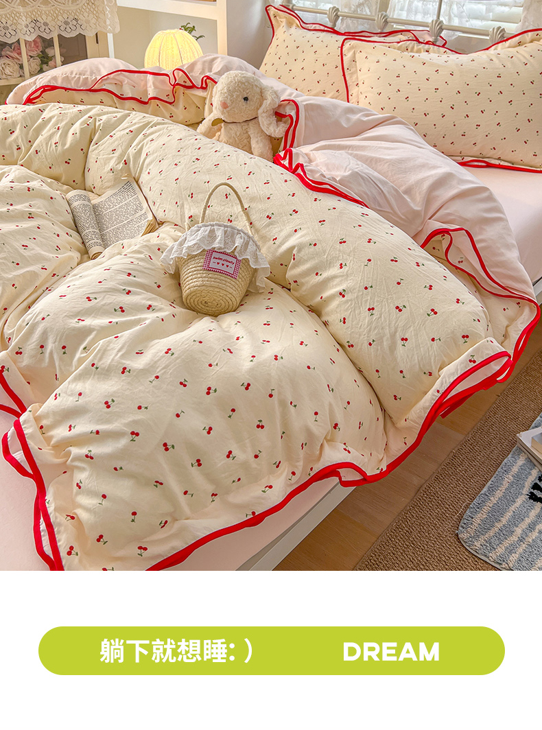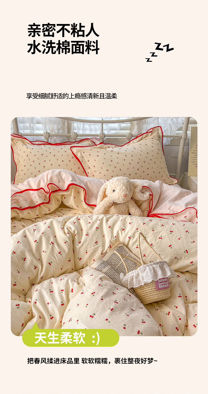 当前位置: 91家纺网 > 商品网购 > 床品套件 > 四件套 > 其它四件套 > 贝凯瑞 2026新款水洗棉仿棉木棉双层纱粉嫩可爱公主清新ins四件套- 樱桃气泡水