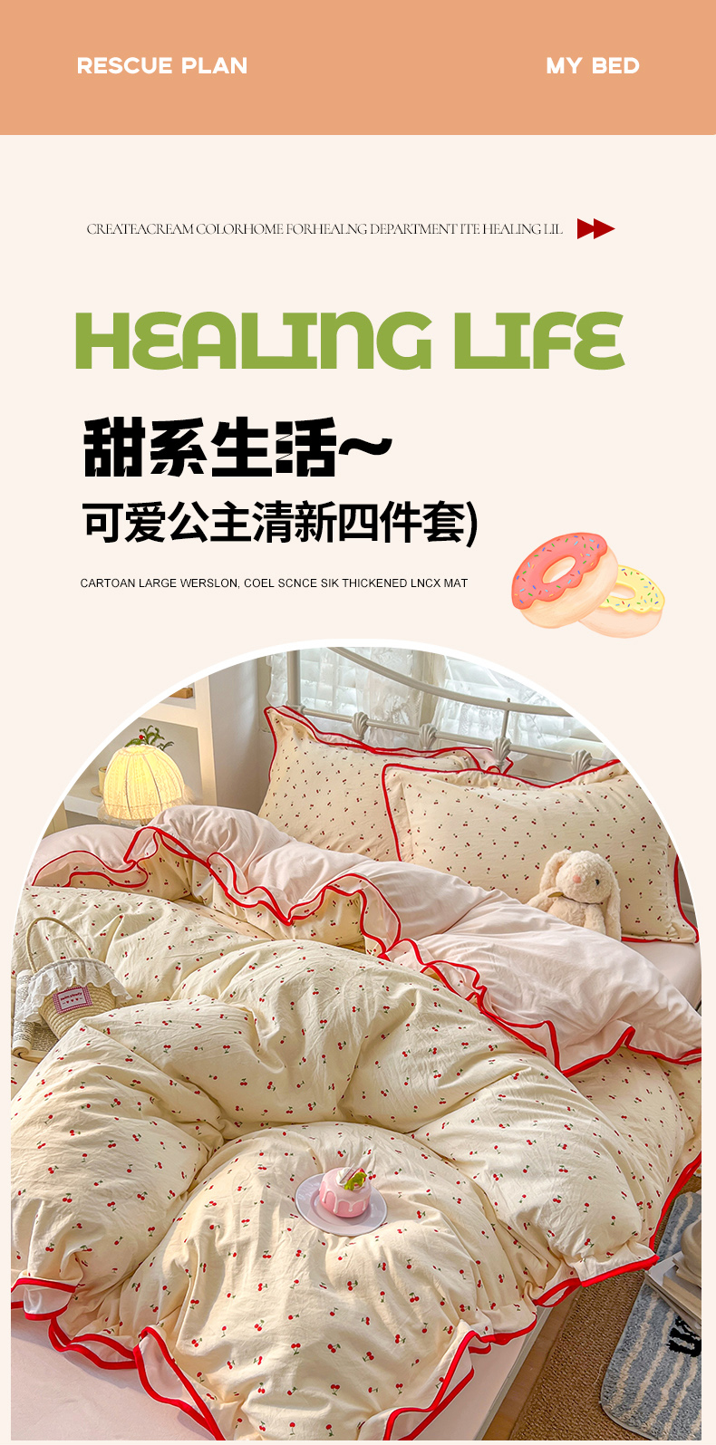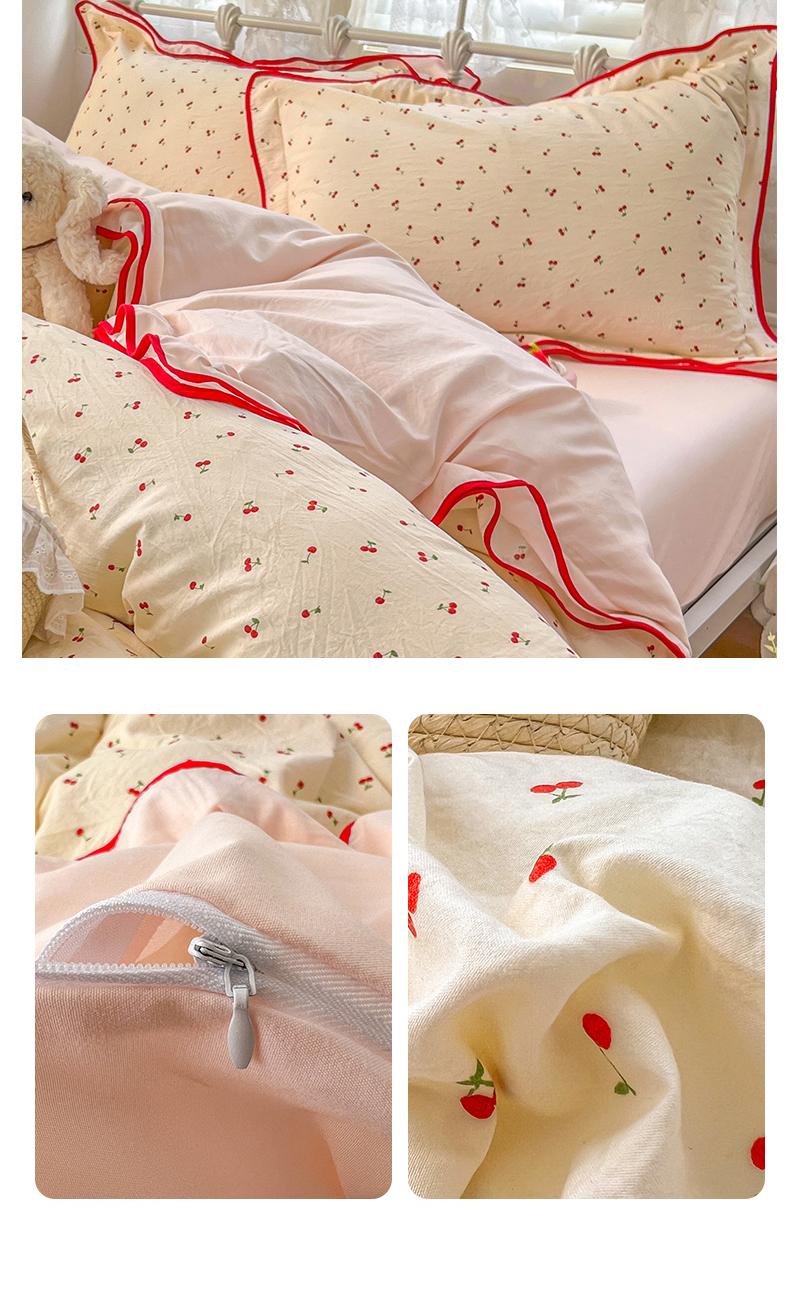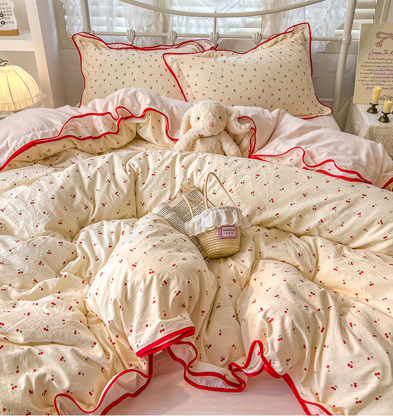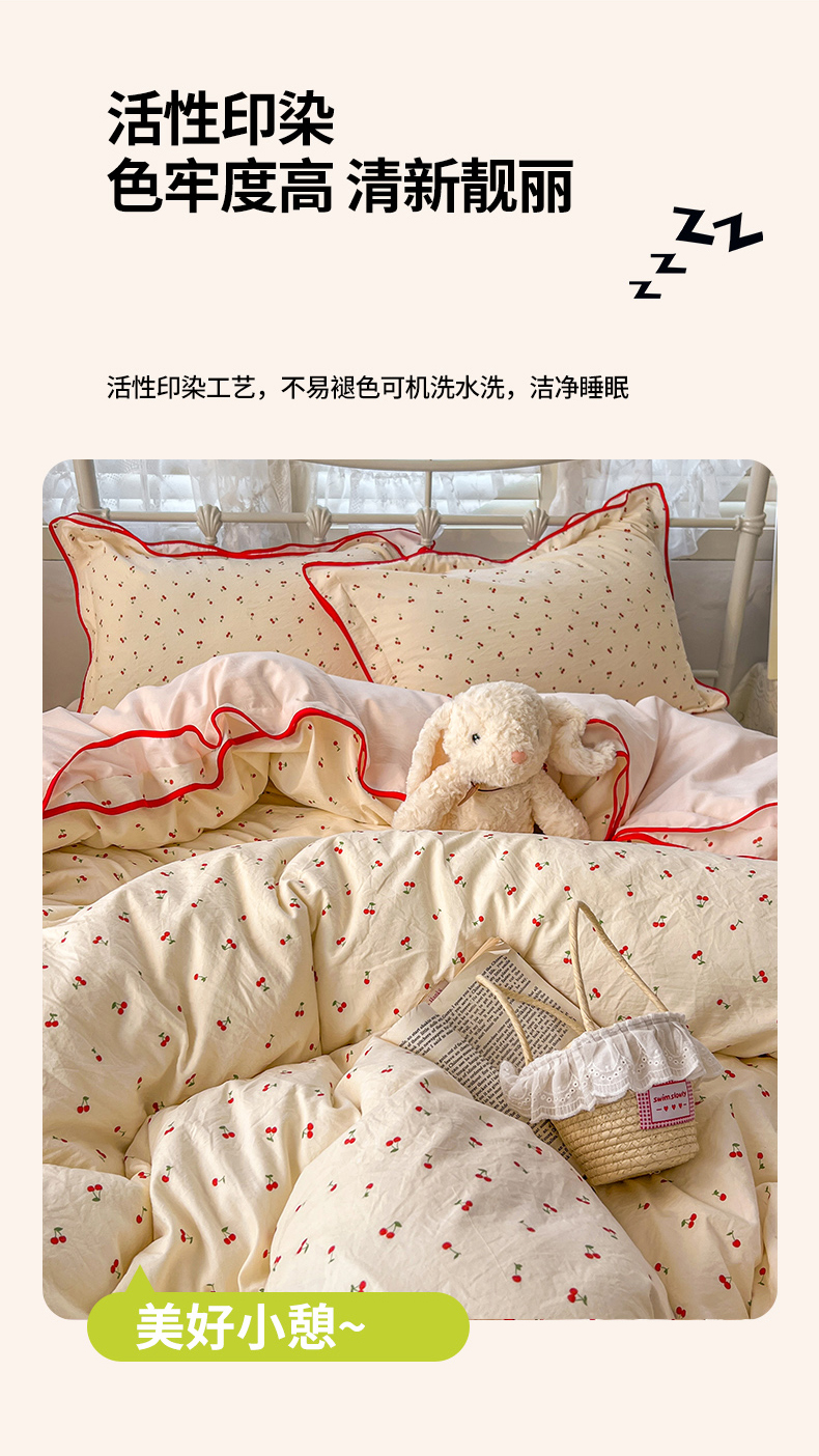 当前位置: 91家纺网 > 商品网购 > 床品套件 > 四件套 > 其它四件套 > 贝凯瑞 2026新款水洗棉仿棉木棉双层纱粉嫩可爱公主清新ins四件套- 樱桃气泡水