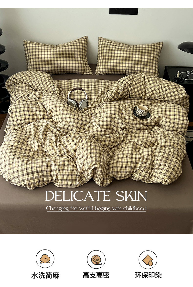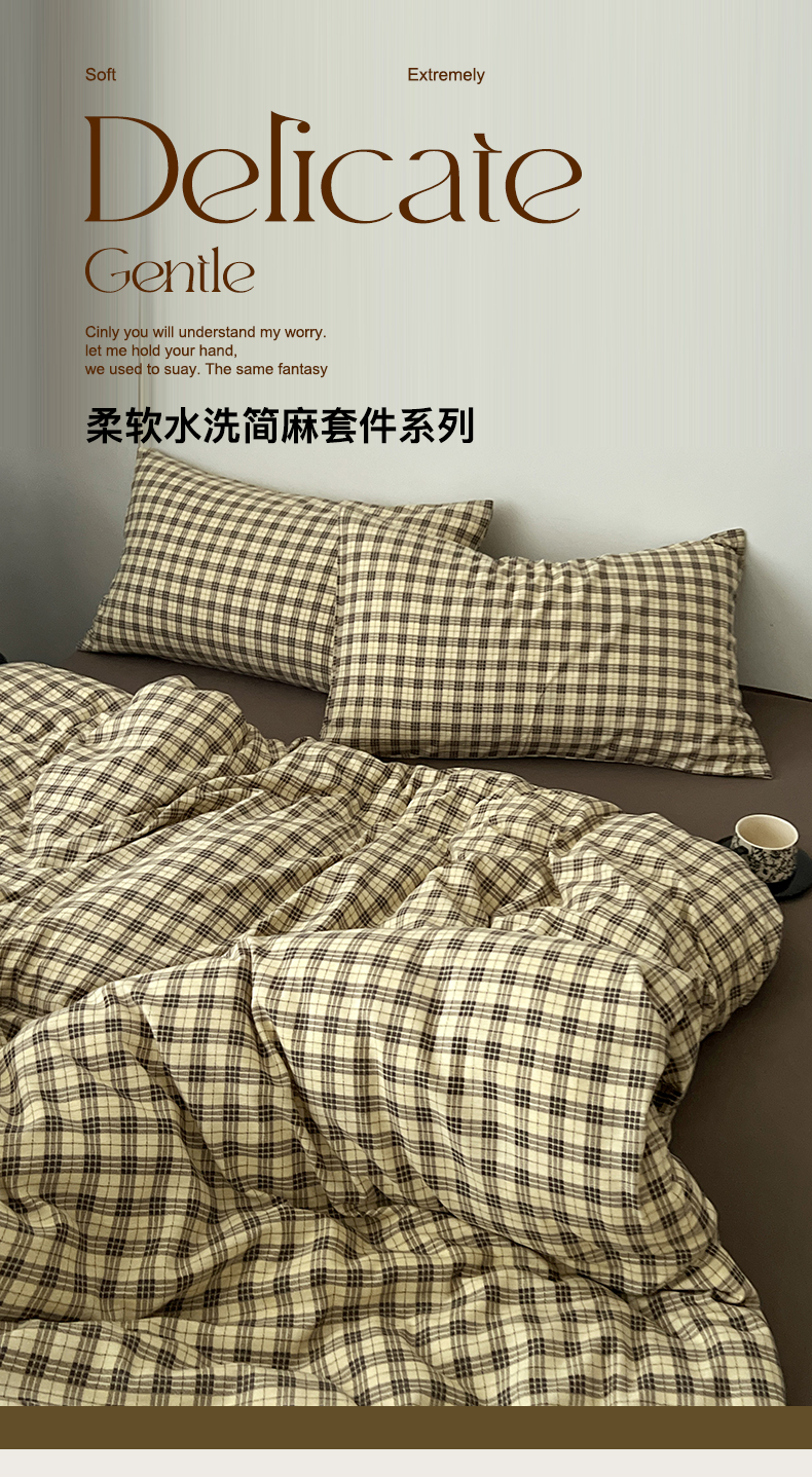当前位置: 91家纺网 > 商品网购 > 床品套件 > 四件套 > 其它四件套 > 你好美丽 2026新款130克高克重格调简麻水洗四件套(暗合) 格调咖小格
