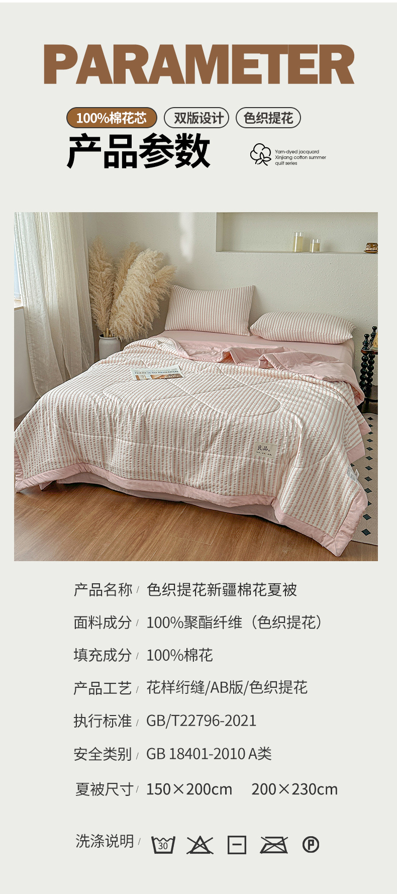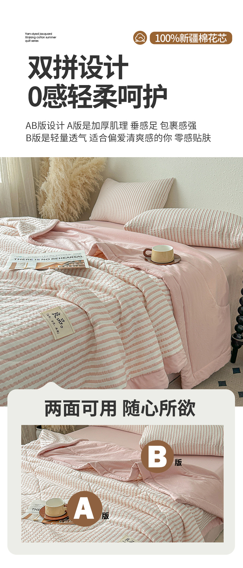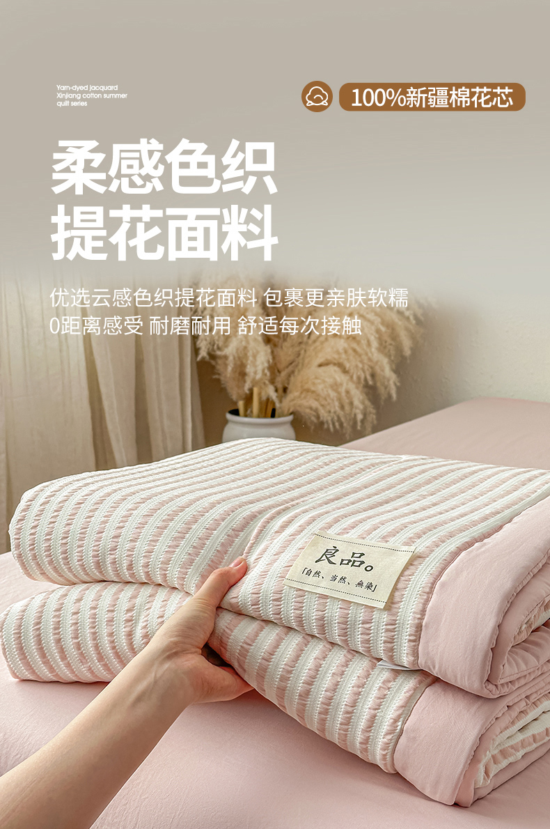 商品名称:尊妙被业 2026新款彩条色织100%新疆棉棉花被夏被夏凉被空调被被子被芯 良品色织 彩条粉