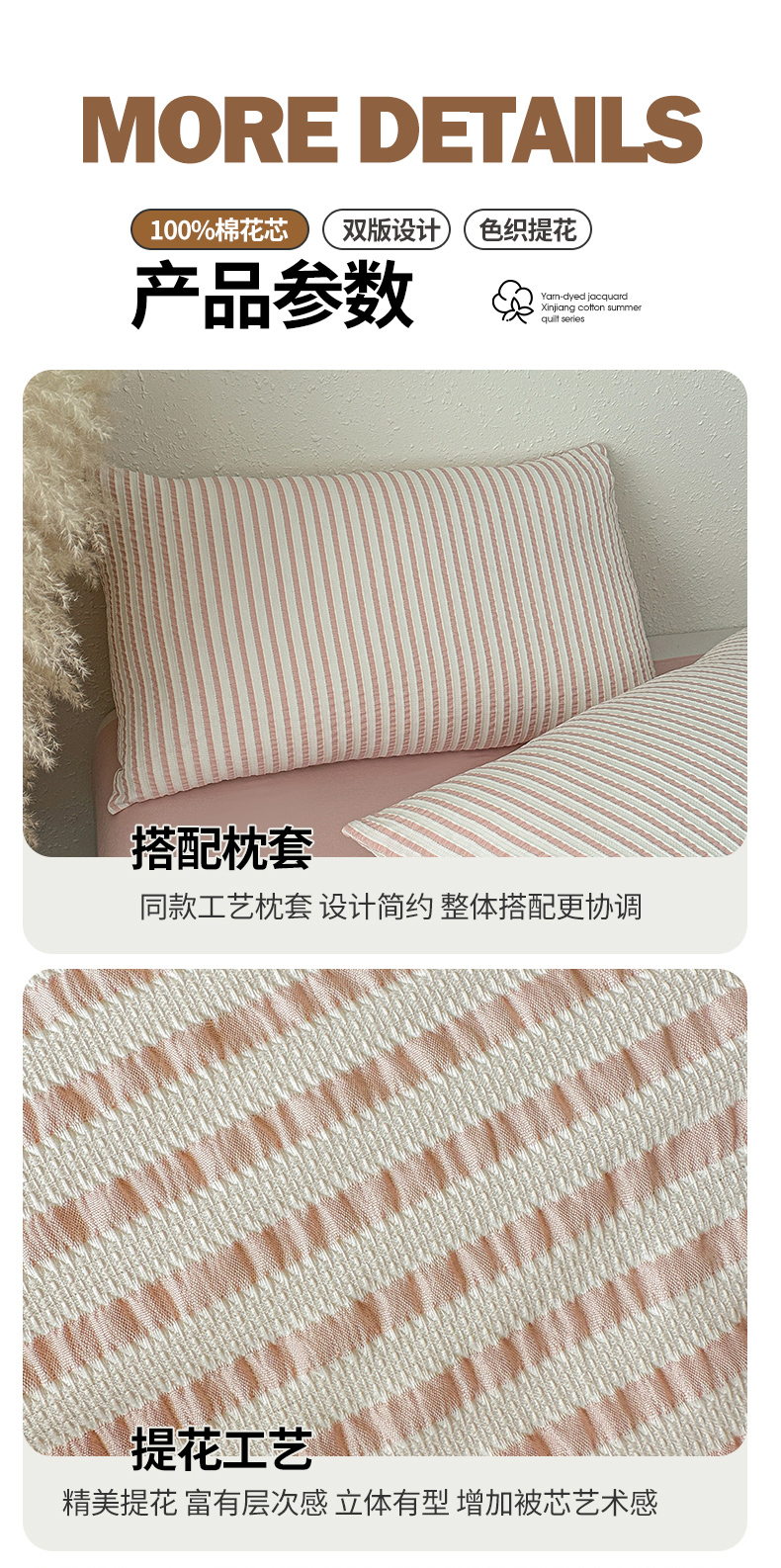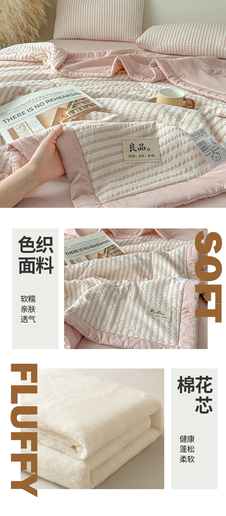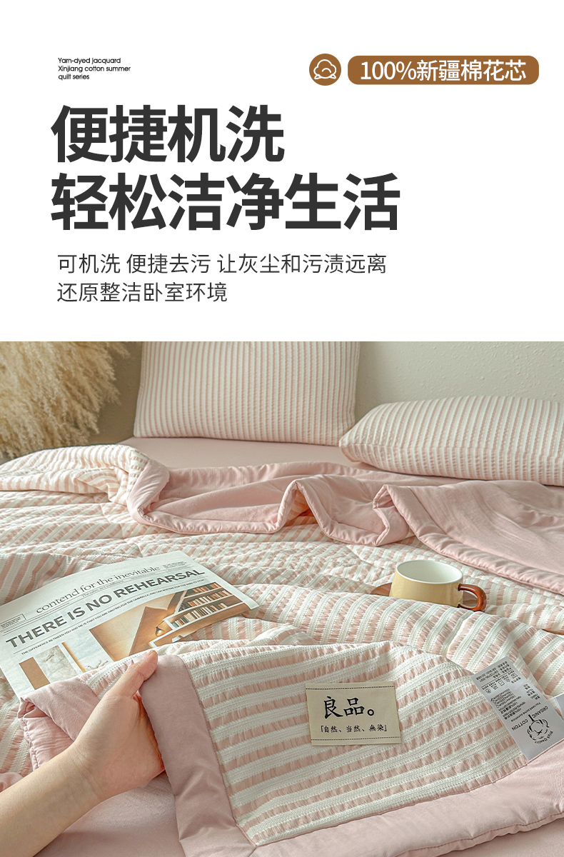 商品名称:尊妙被业 2026新款彩条色织100%新疆棉棉花被夏被夏凉被空调被被子被芯 良品色织 彩条粉