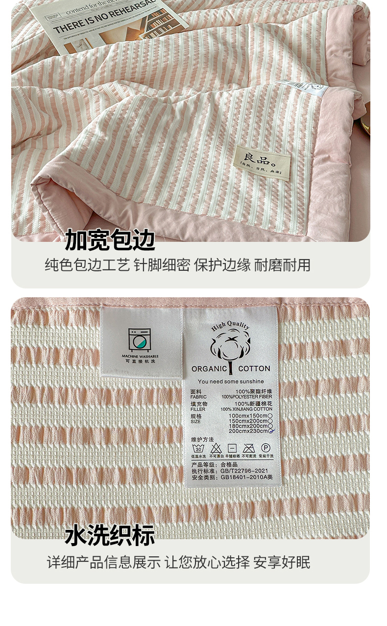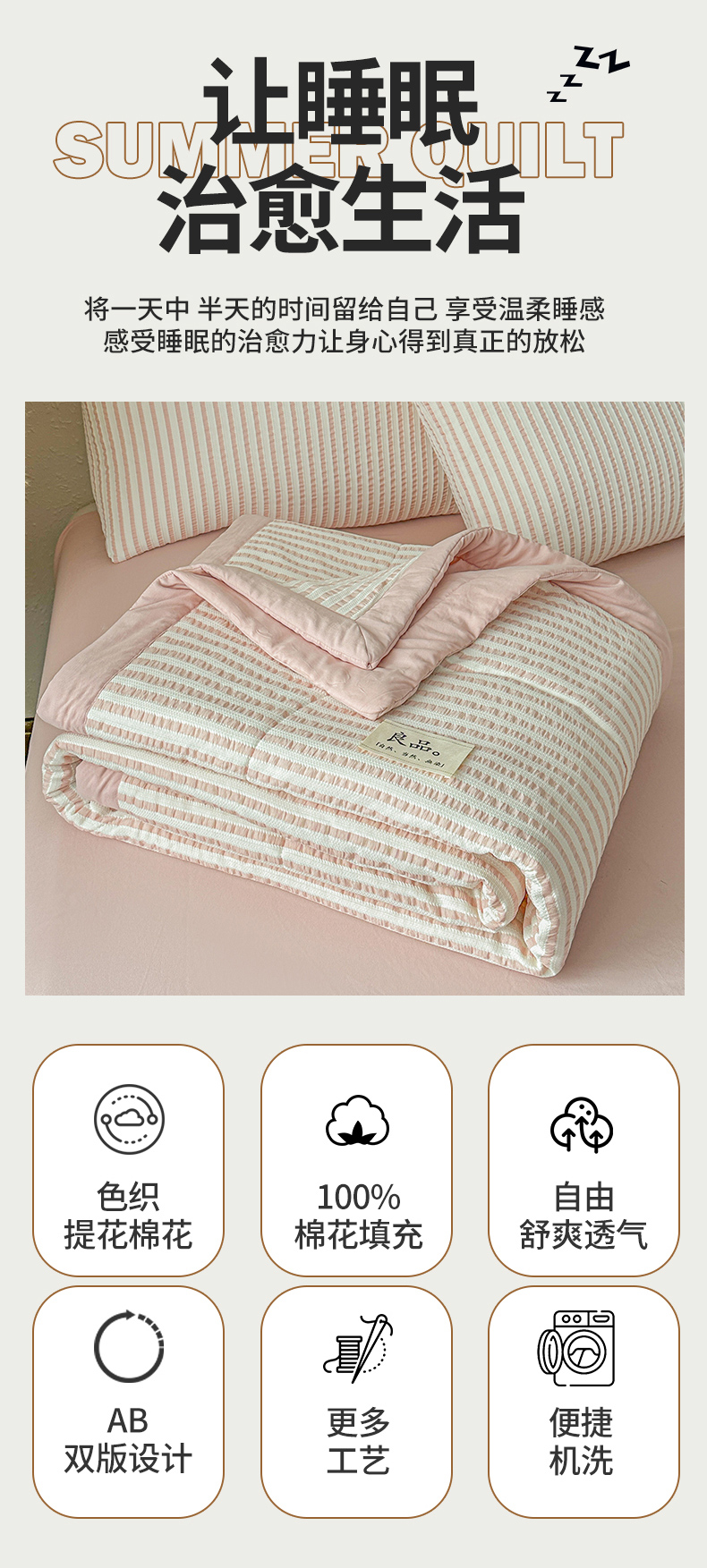 (总)尊妙被业 2026新款良品条白100%新疆棉花夏被,良品条白+粉,良品条白+咖,良品条白+蓝,良品条白+绿