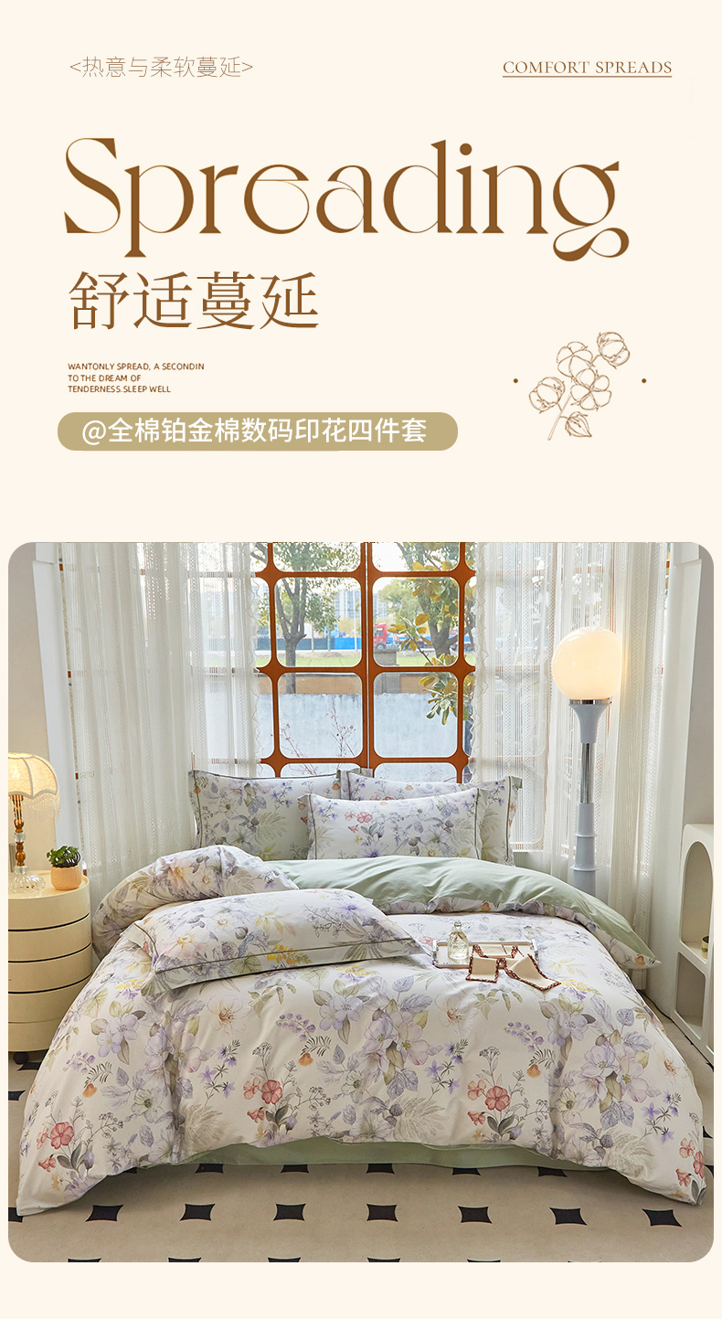 (总)启航家居 2025新款全棉铂金棉数码印花四件套,风香花倦,花的嫁纱,洛香忆梦绿,暮云春树灰,翩若惊鸿粉,普罗旺斯紫,新塞纳舞曲红,新塞纳舞曲紫