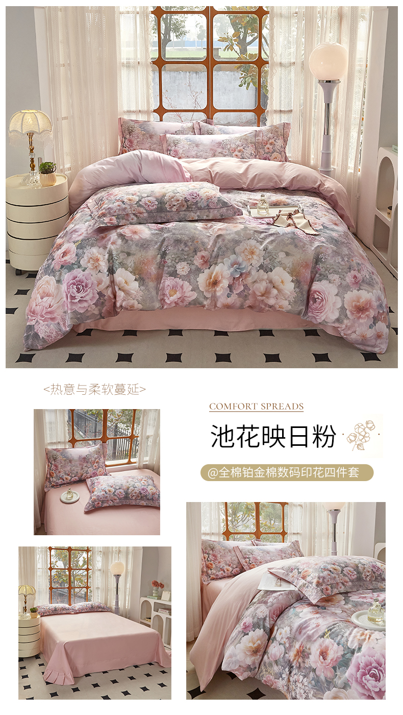 商品名称:启航家居 2026新款全棉铂金棉数码印花四件套 臻爱粉