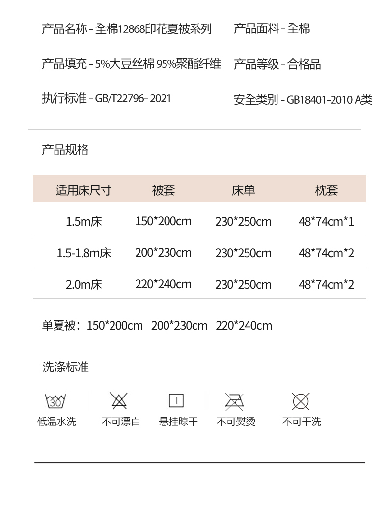 150x200cm单夏被 | ¥50.00 |