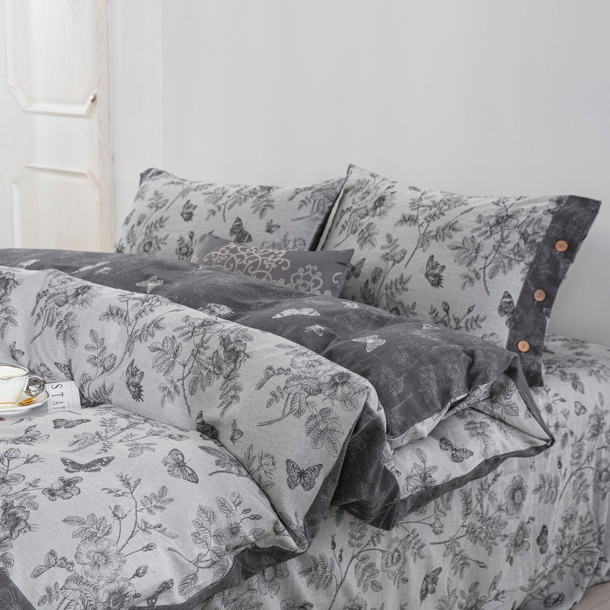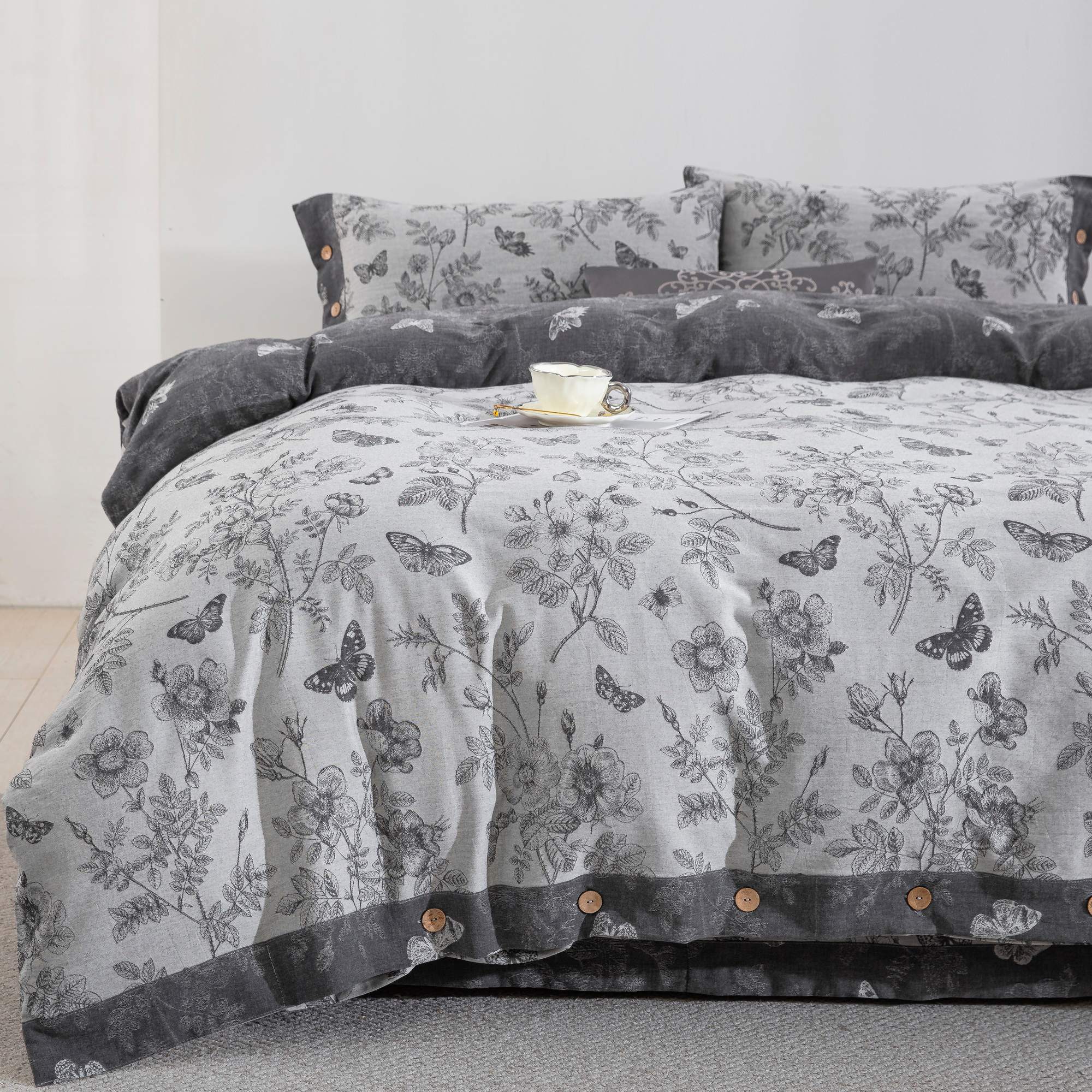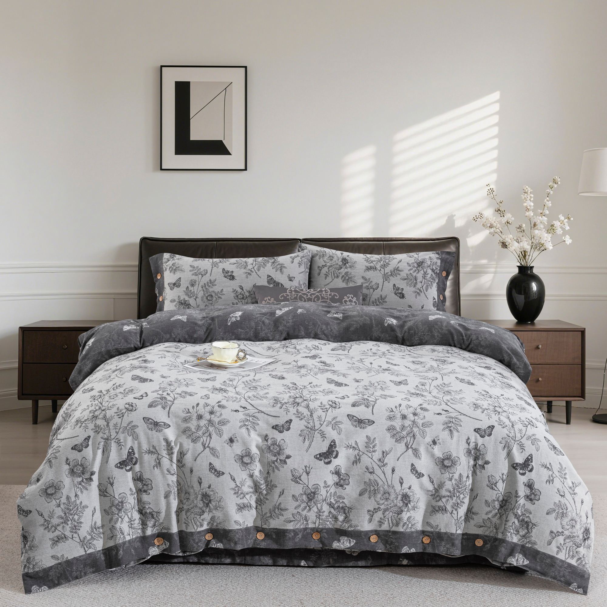 (总)双层纱家居 2025新款全棉纯棉色织提花纽扣款四件套-羽花蝶