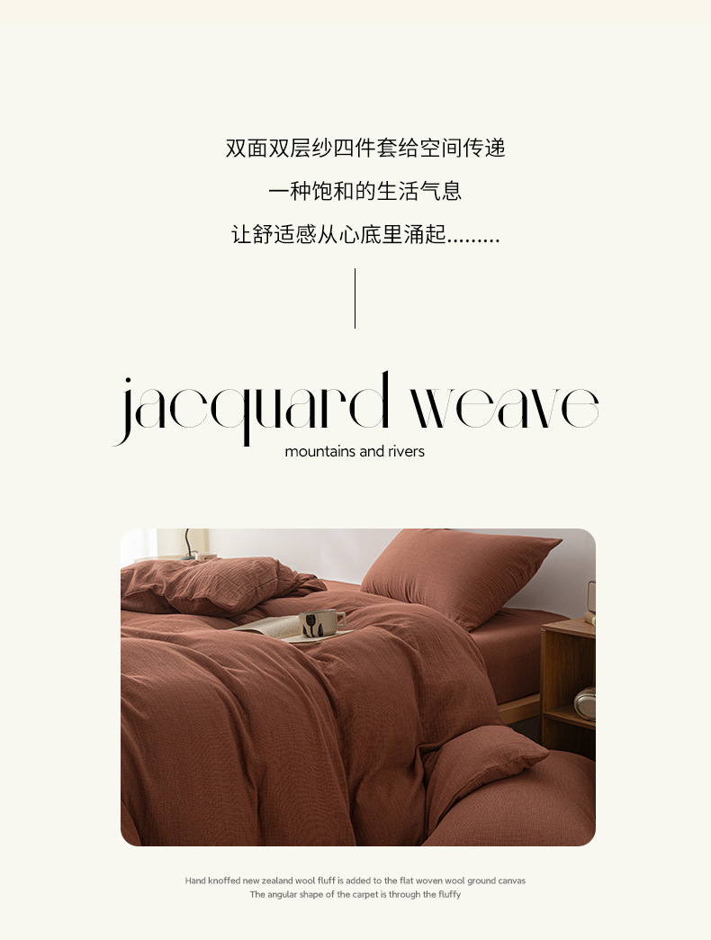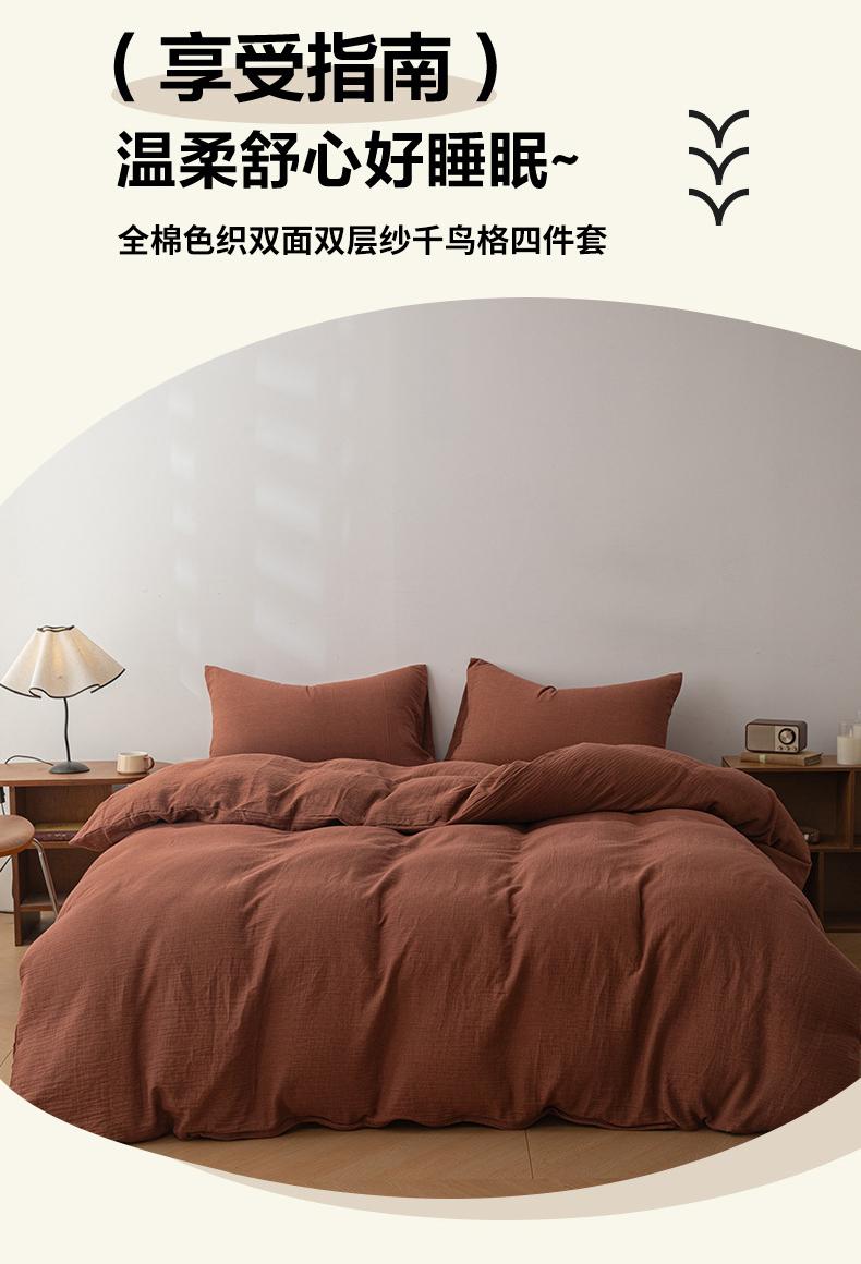 当前位置: 91家纺网 > 商品网购 > 床品套件 > 四件套 > 全棉普通四件套 > 双层纱家居 2025新款千鸟格全棉纯棉色织双层纱四件套 弥山-朱红