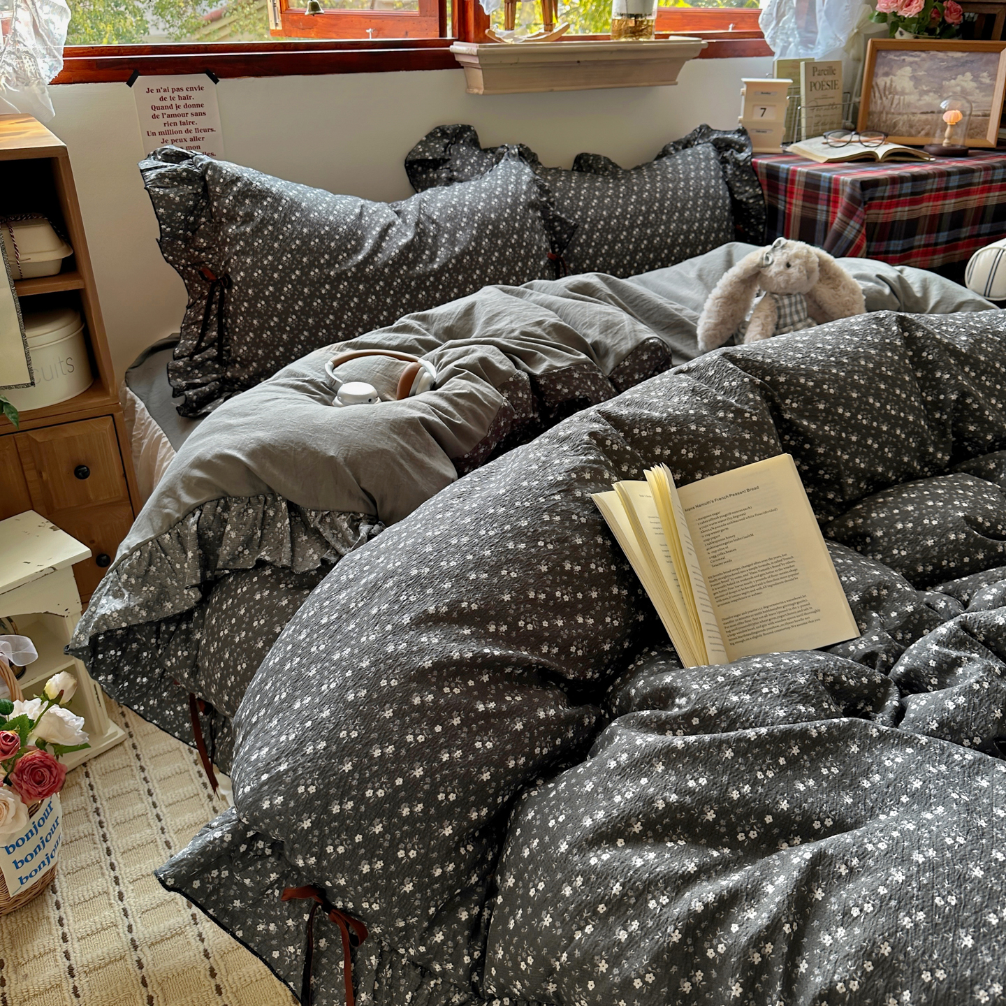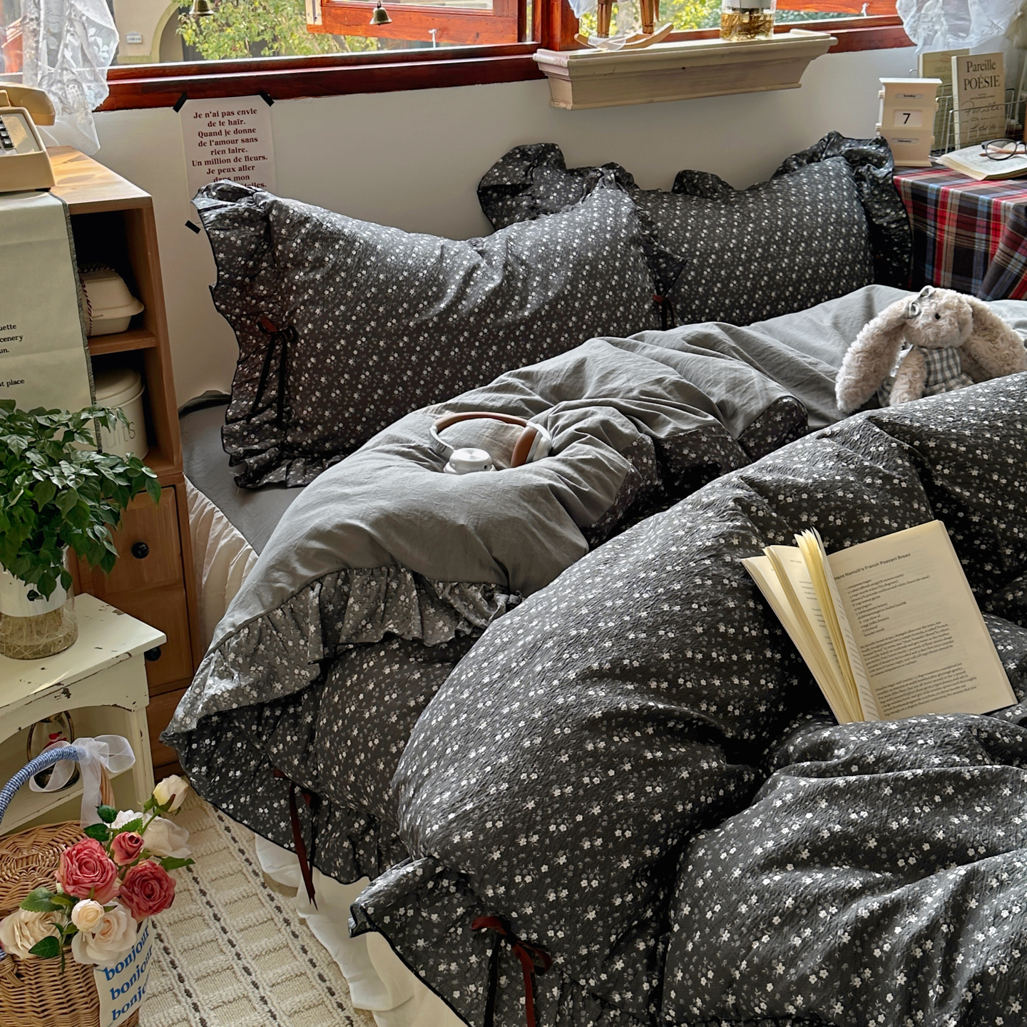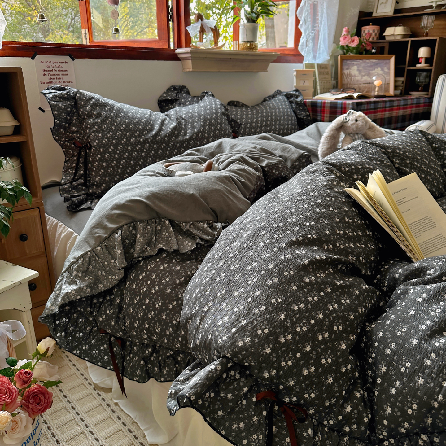 当前位置: 91家纺网 > 商品网购 > 床品套件 > 四件套 > 其它四件套 > 阿曼达 2026新款日韩系复古印花小碎花花边蝴蝶结系列四件套 复古蝴蝶结-松月间-灰