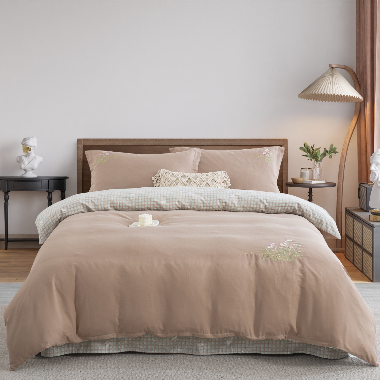 (总)双层纱家居 2024新款100支新疆精梳棉植物大豆蛋白被,卡其色,白色