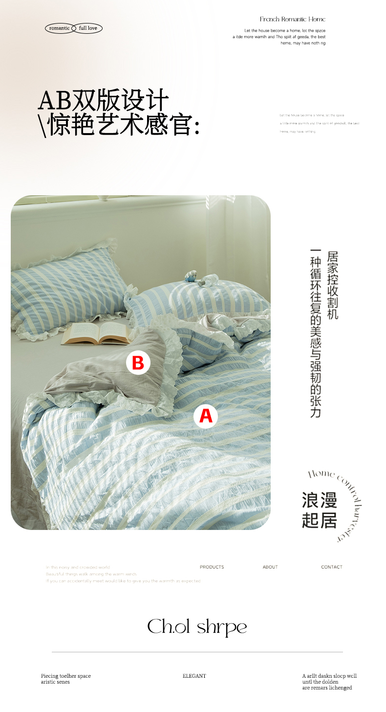 (总)双层纱家居 2024新款双层纱四件套,百福蓝,梦百合,水墨米黄,水墨米兰,西雅图蓝
