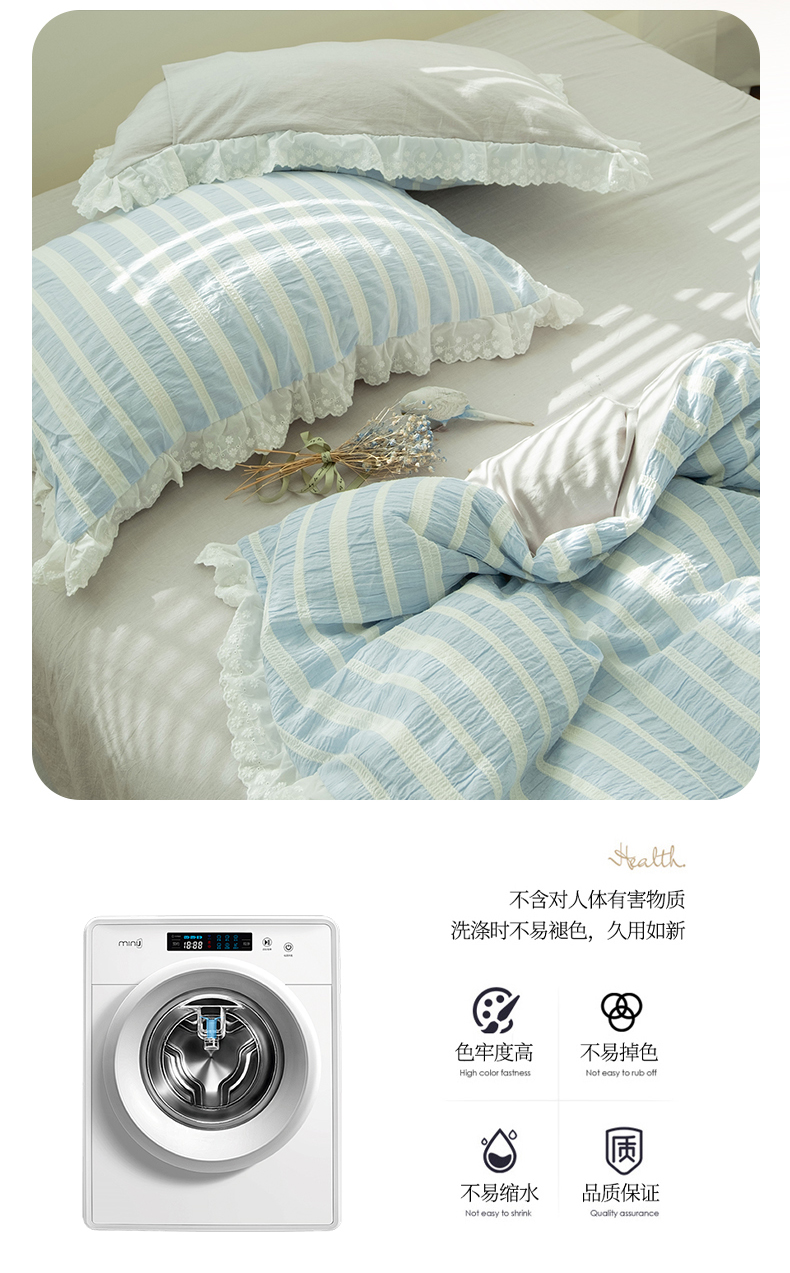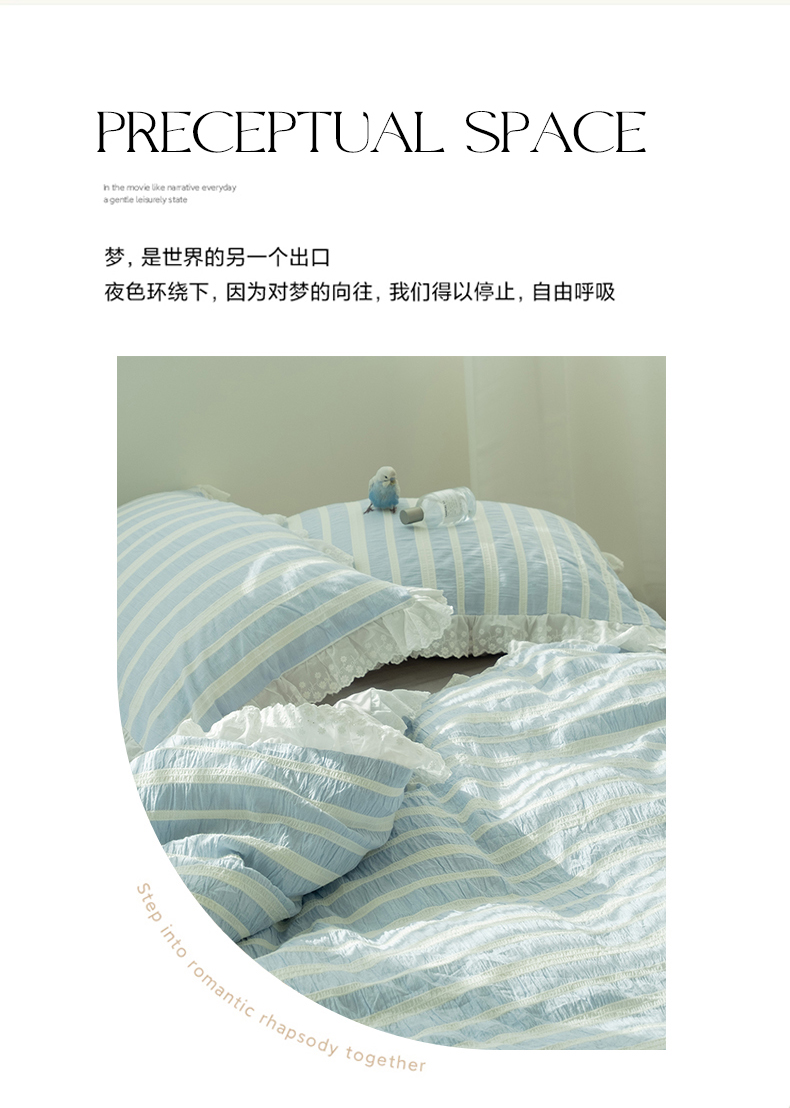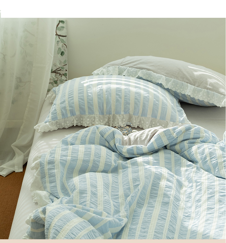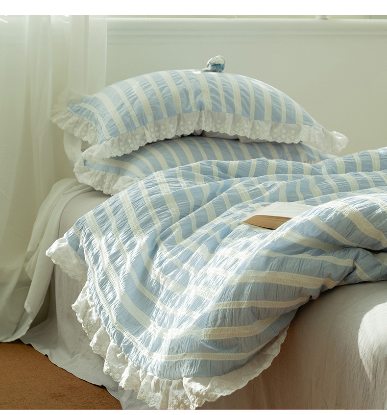 (总)双层纱家居 2026新款蓝色海洋色织提花蕾丝花边款四件套