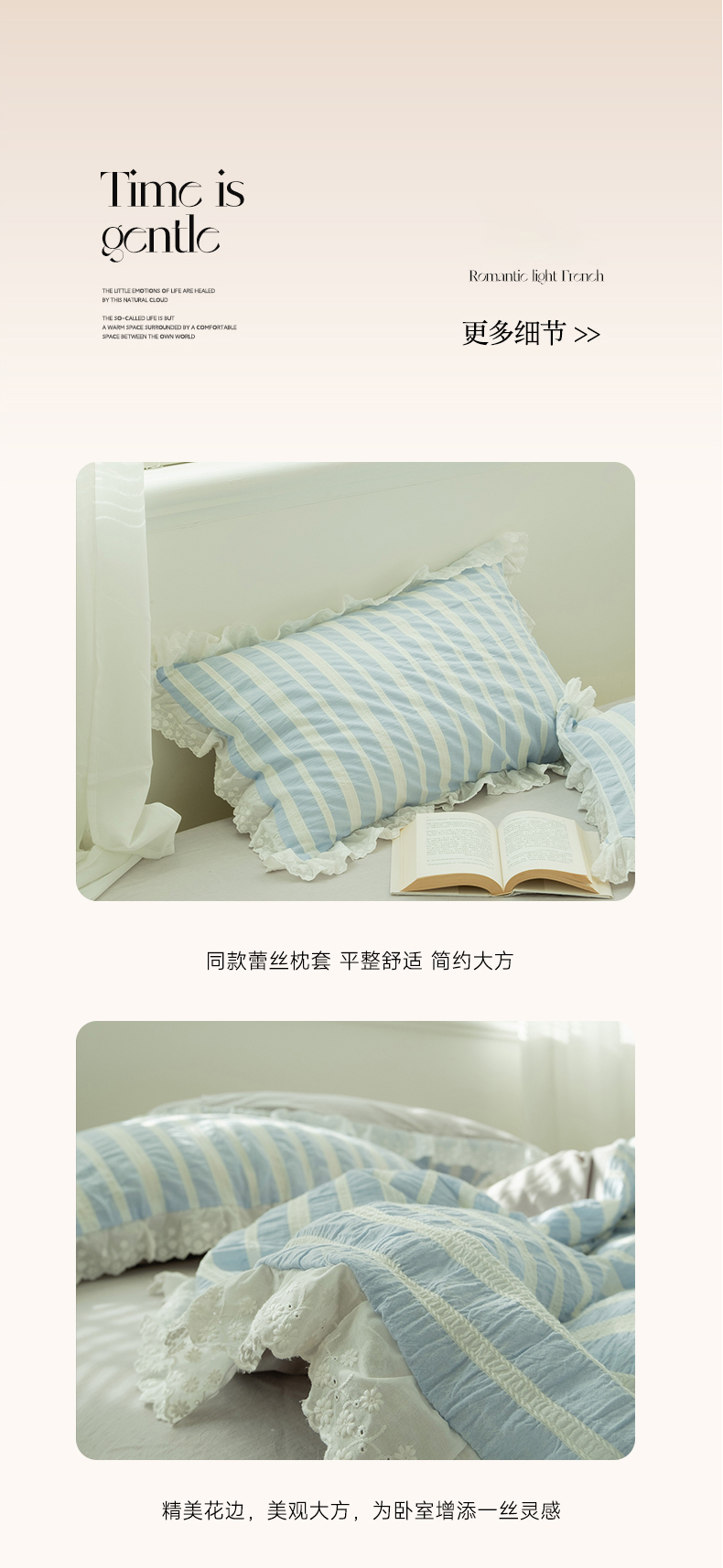 商品名称:(总)双层纱家居 2026新款蓝色海洋色织提花蕾丝花边款四件套