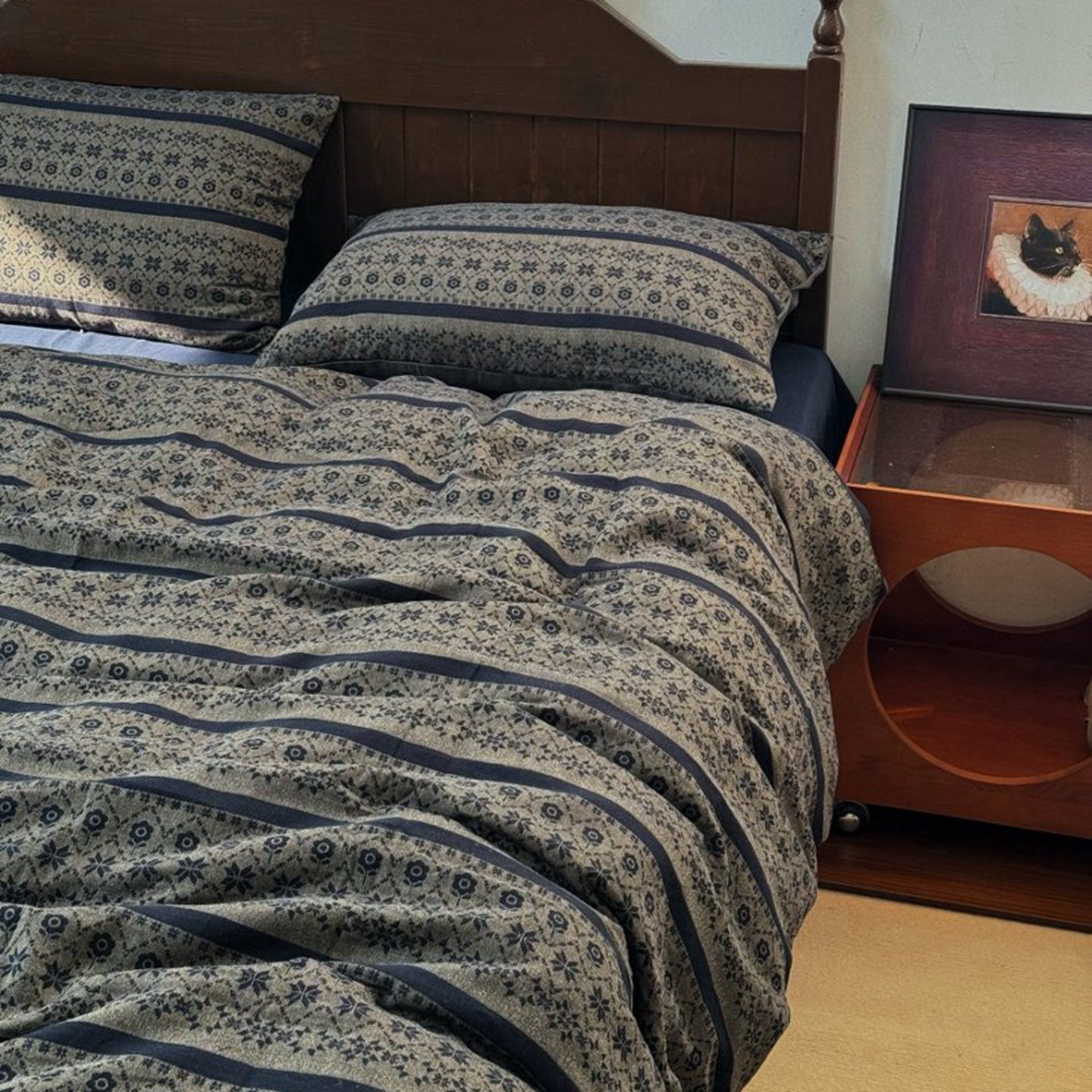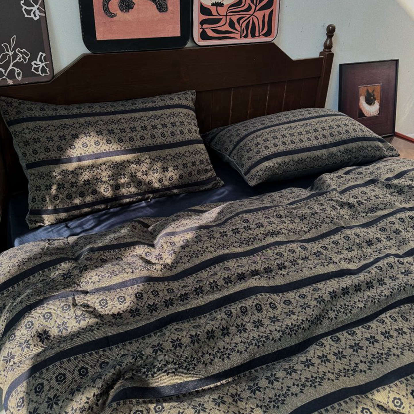 (总)双层纱家居 2026新款全棉纯棉色织提花双层纱四件套-丝羽黑
