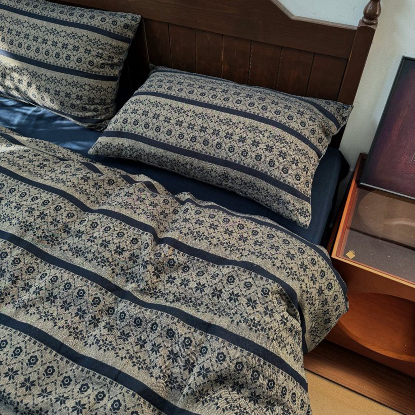 商品名称:(总)双层纱家居 2026新款全棉纯棉色织提花双层纱四件套-丝羽黑