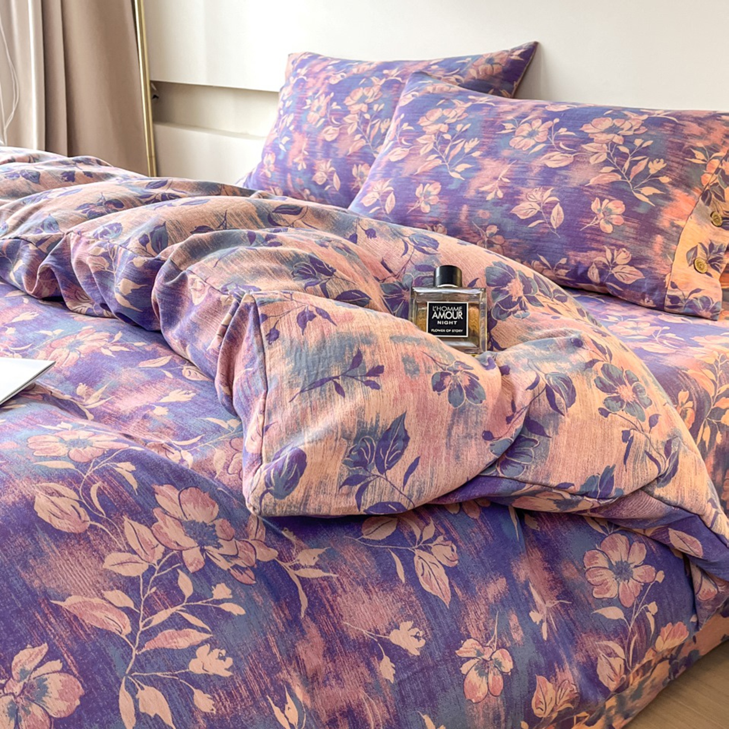 (总)双层纱家居 2024新款腊梅花系列四件套,梅醉春秋-粉,梅醉春秋-兰,梅醉春秋-紫