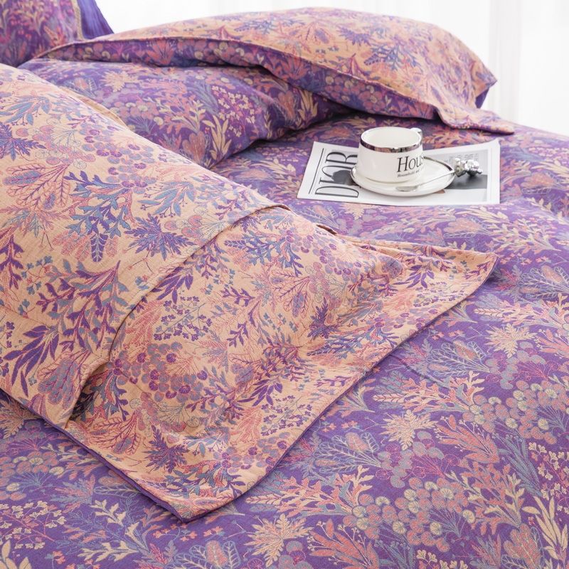 (总)双层纱家居 2024新款腊梅花系列四件套,梅醉春秋-粉,梅醉春秋-兰,梅醉春秋-紫