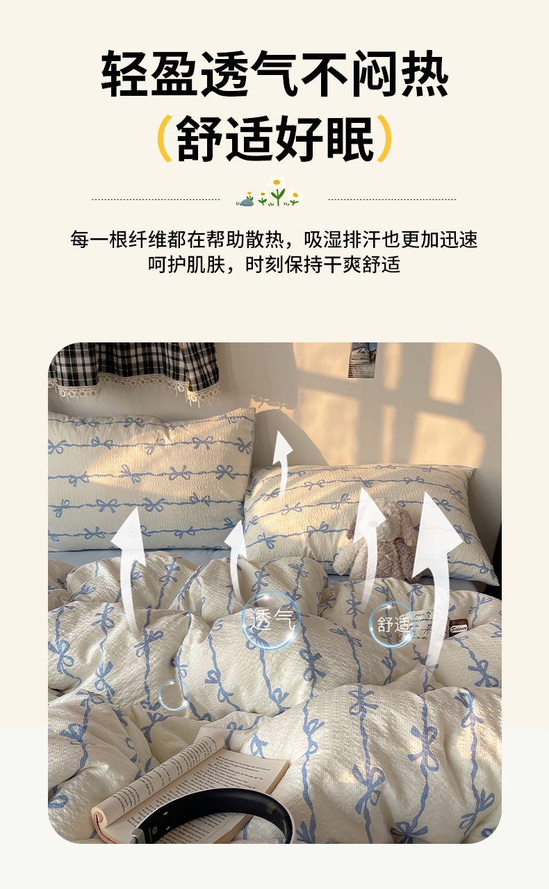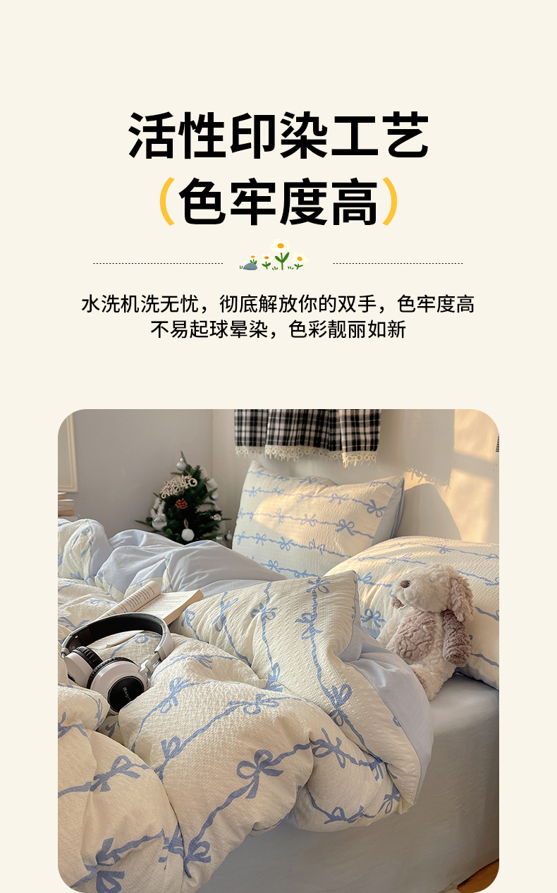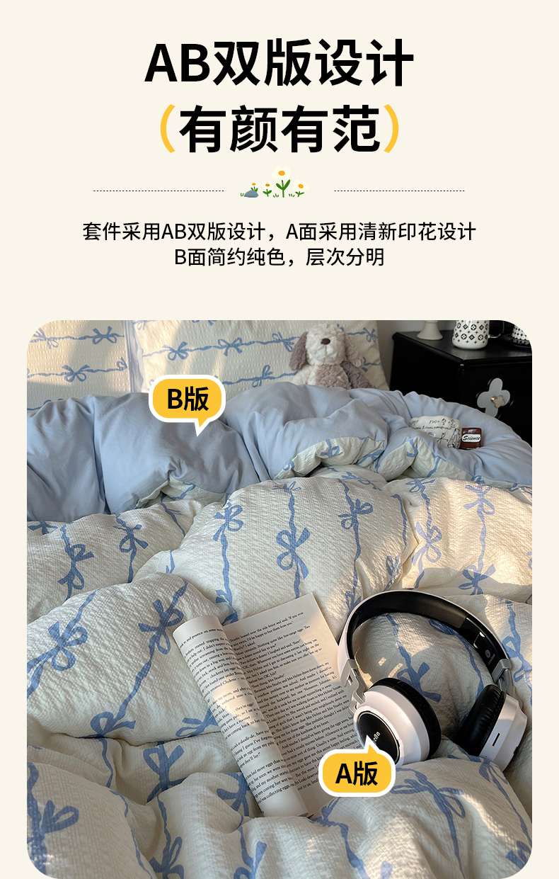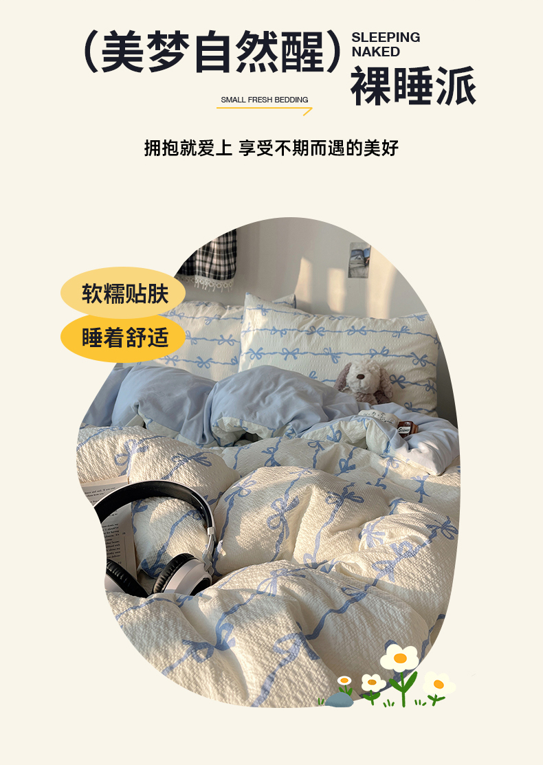 当前位置: 91家纺网 > 商品网购 > 床品套件 > 四件套 > 其它四件套 > 沐芷 2026 高克重110g泡芙棉四件套A类床上用品被套宿舍床单三件套【提供买家秀】 蓝丝带