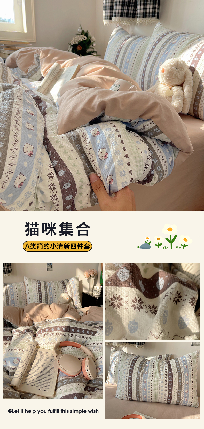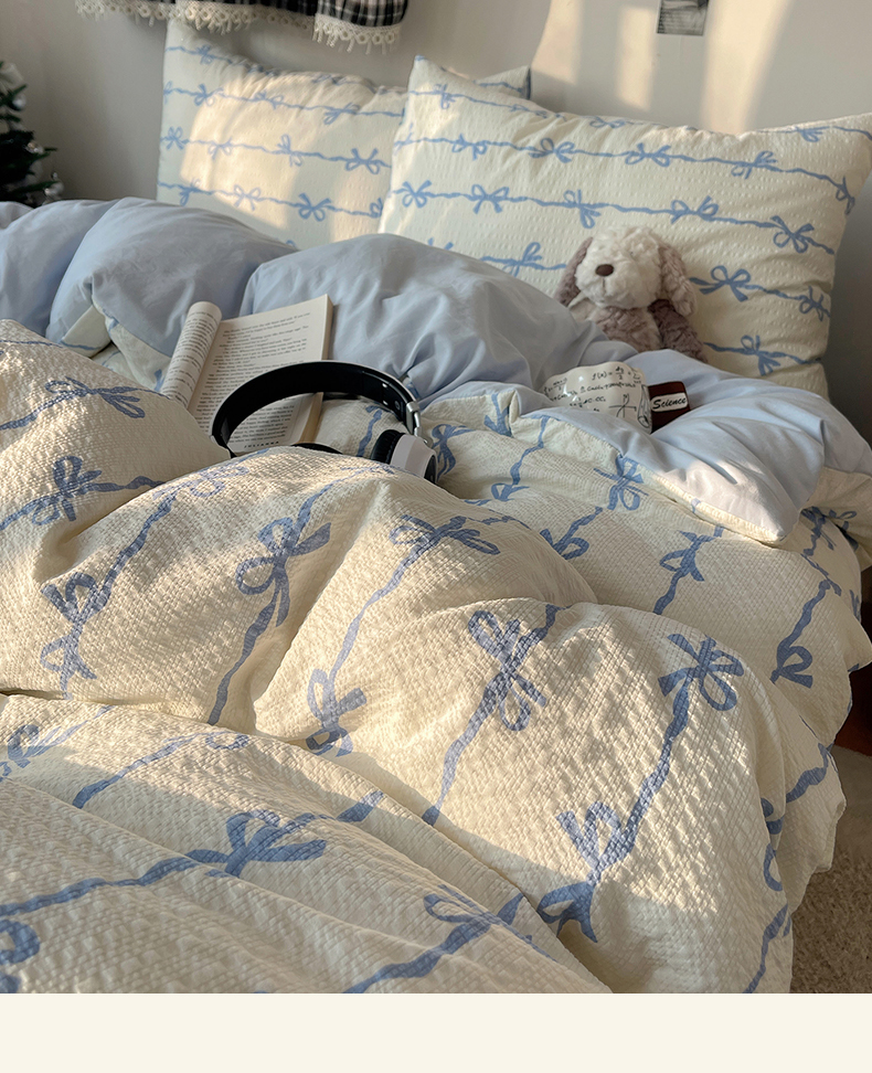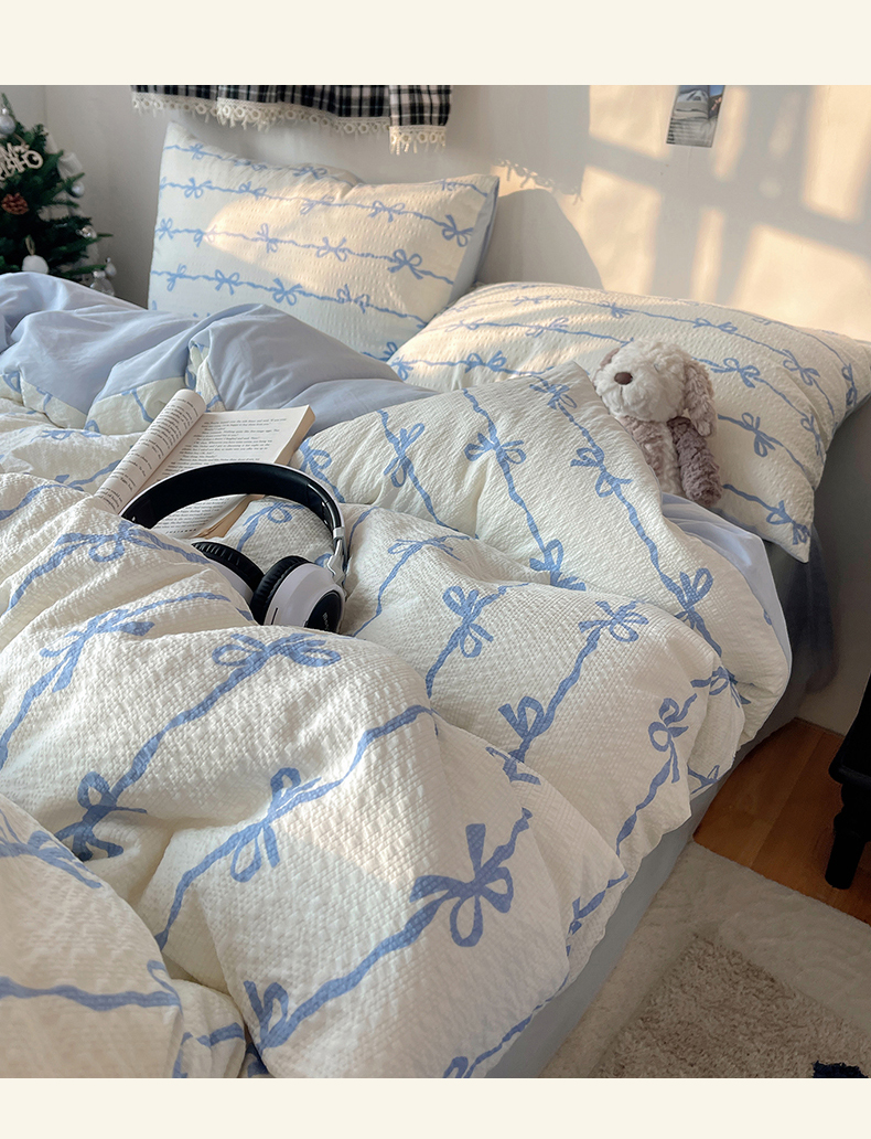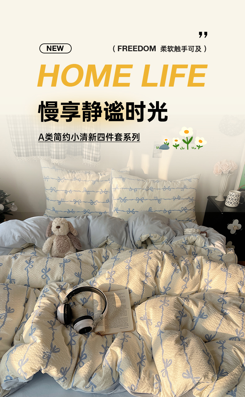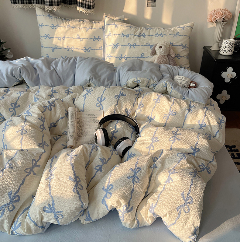 当前位置: 91家纺网 > 商品网购 > 床品套件 > 四件套 > 其它四件套 > 沐芷 2026 高克重110g泡芙棉四件套A类床上用品被套宿舍床单三件套【提供买家秀】 蓝丝带
