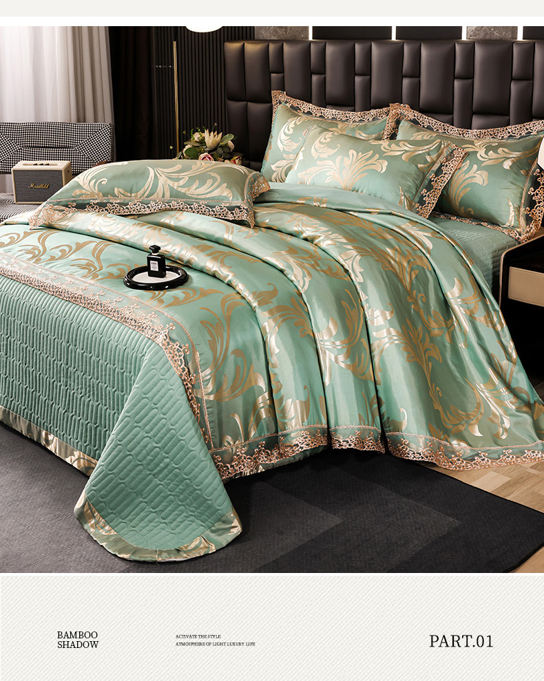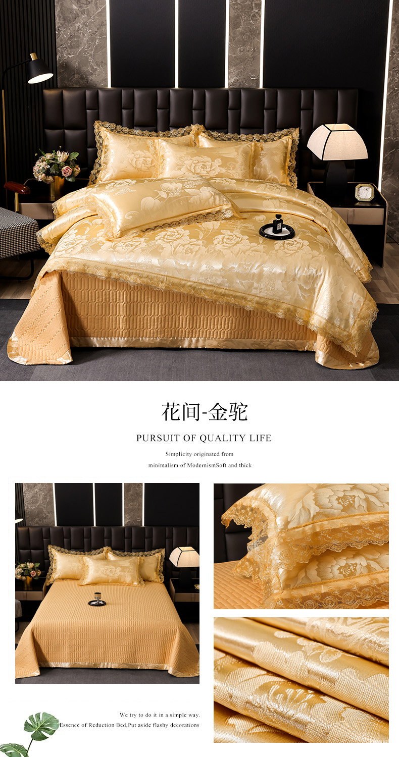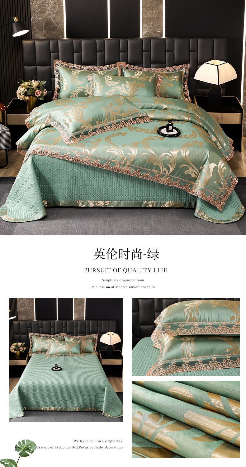 (总)提花大世界 2026新款直播爆款水洗真丝天丝贡缎提花夹棉床盖花边四件套,波西花园-浅豆沙,花间-金驼,花开-粉玉,墨韵-金属灰,奈欧莎-深豆沙,雅布洛-祖母绿,英伦时尚-绿