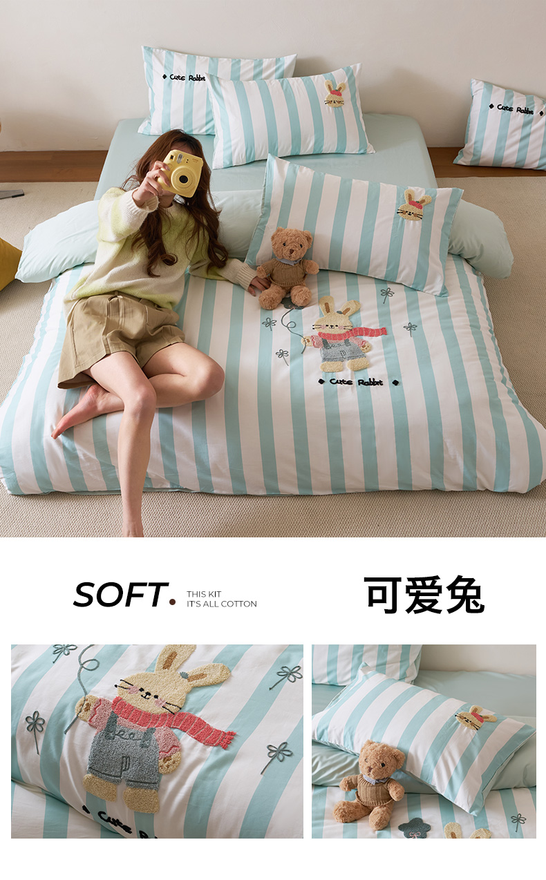 当前位置: 91家纺网 > 商品网购 > 床品套件 > 四件套 > 全棉普通四件套 > 久典家居 2026新款A类50S双股100支全棉纯棉贡缎长绒棉数码印花毛巾绣四件套 可爱兔