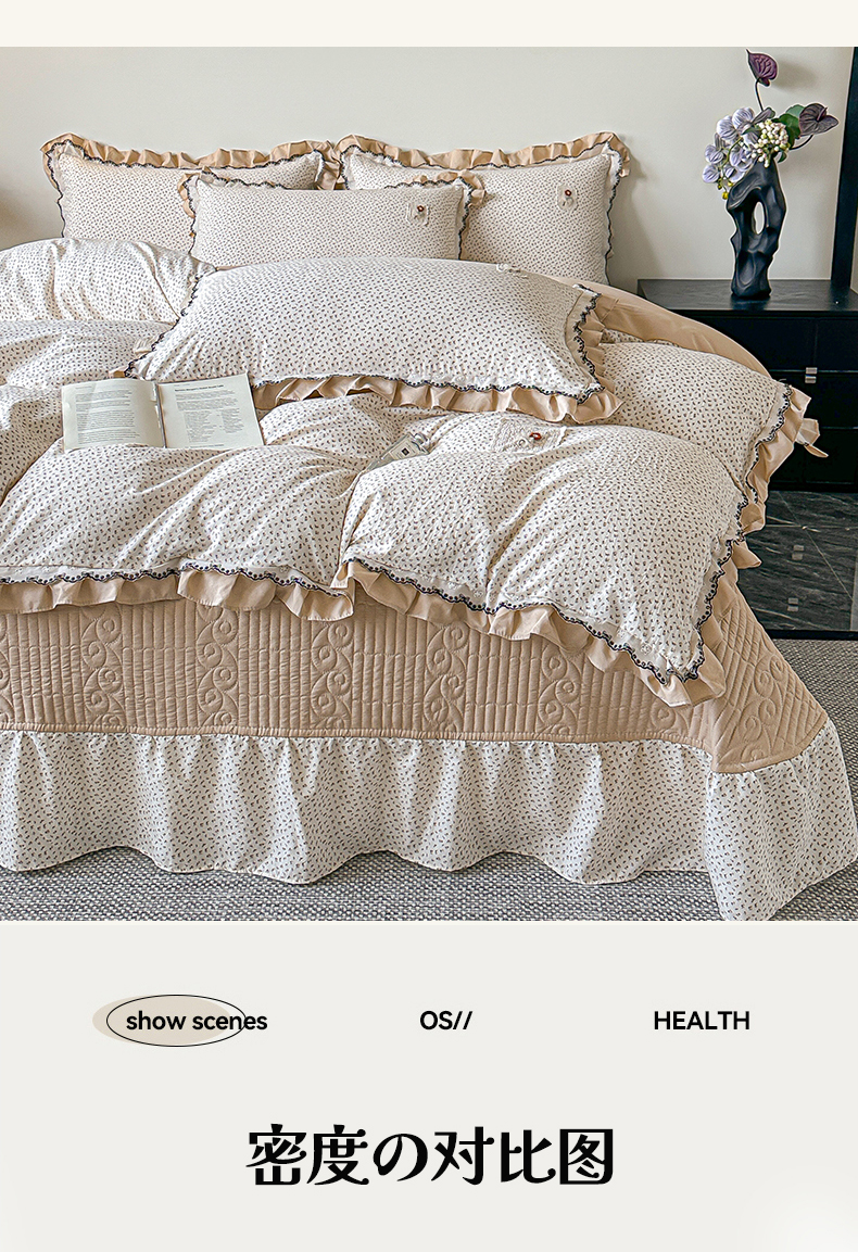商品名称:梓之赫 2026新款云感纱夹棉床盖四件套-小美满 小美满-可可棕