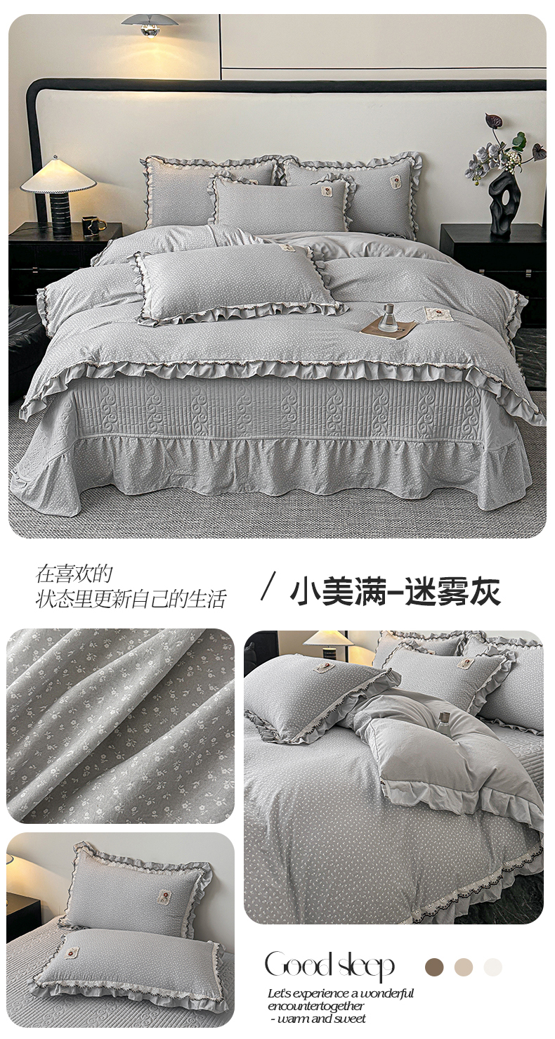 (总)梓之赫 2026新款云感纱夹棉床盖四件套-小美满,小美满-高级灰,小美满-可可棕,小美满-迷雾灰,小美满-蜜合紫,小美满-摩卡棕,小美满-奶茶色,小美满-奶油粉