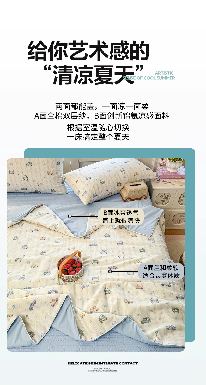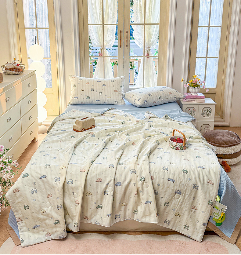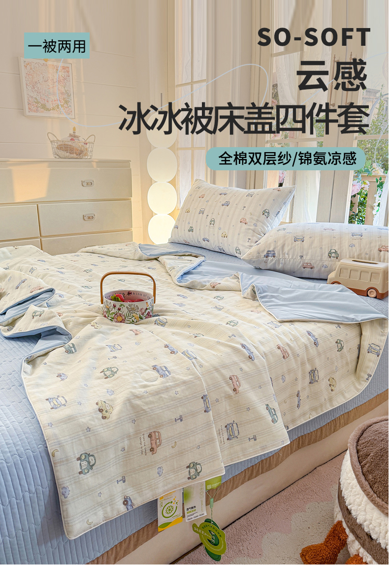 当前位置: 91家纺网 > 商品网购 > 床品套件 > 四件套 > 其它四件套 > 木楌家居 2026新款全棉纱布云感冰冰被床盖四件套系列 小汽车