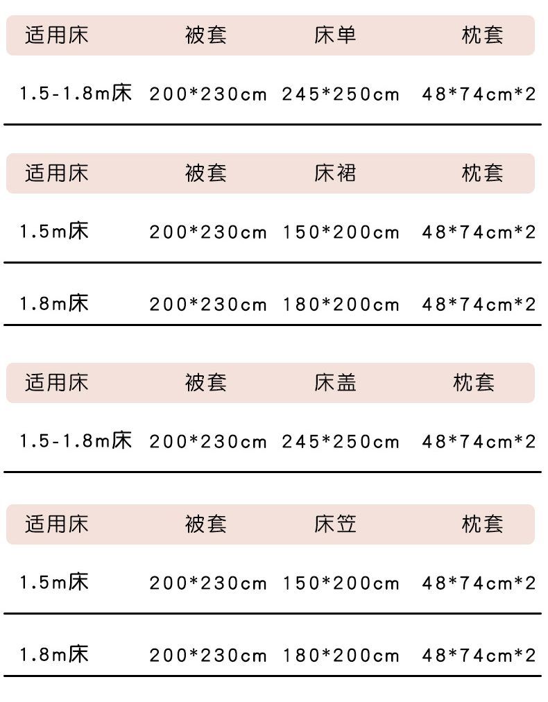 【床笠款】1.8四件套-被套200x230 | ¥88.00 |