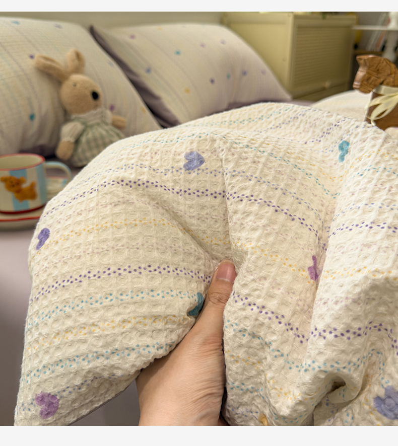 当前位置: 91家纺网 > 商品网购 > 床品套件 > 四件套 > 全棉普通四件套 > 眠博士 2026新款A类全棉印花华夫格工艺四件套 全棉华夫格-紫心甜条
