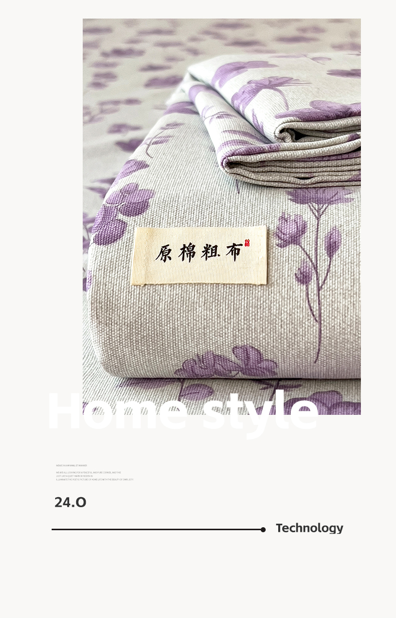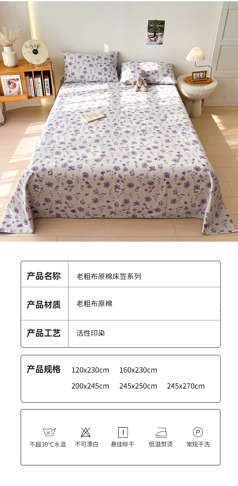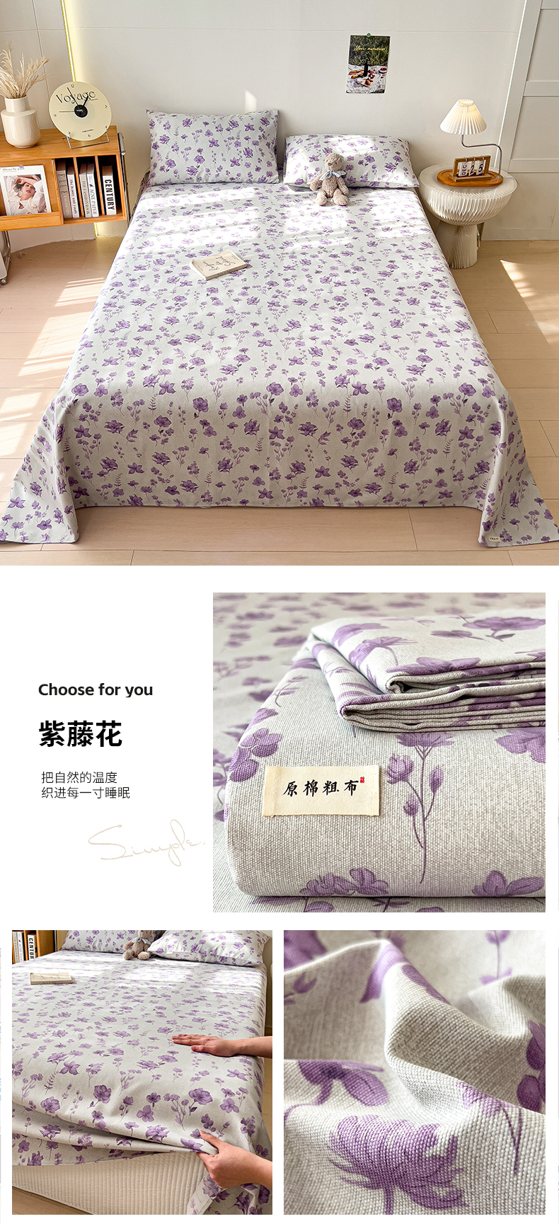 芃成家纺 2026新款老粗布单床单 紫藤花