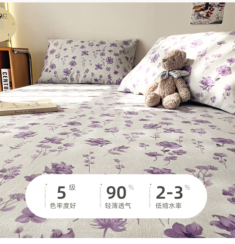 • 91家纺网 家纺一手货源 找家纺 芃成家纺 2026新款老粗布单床单 紫藤花