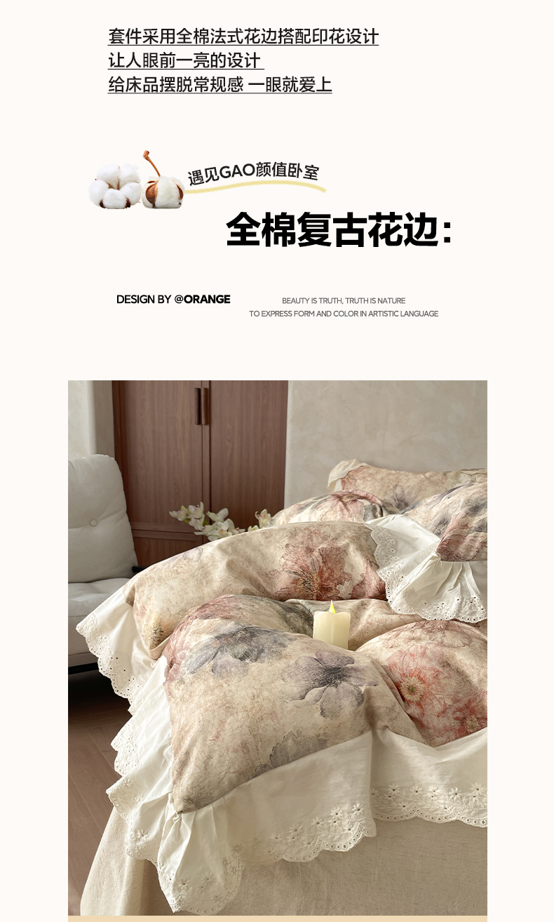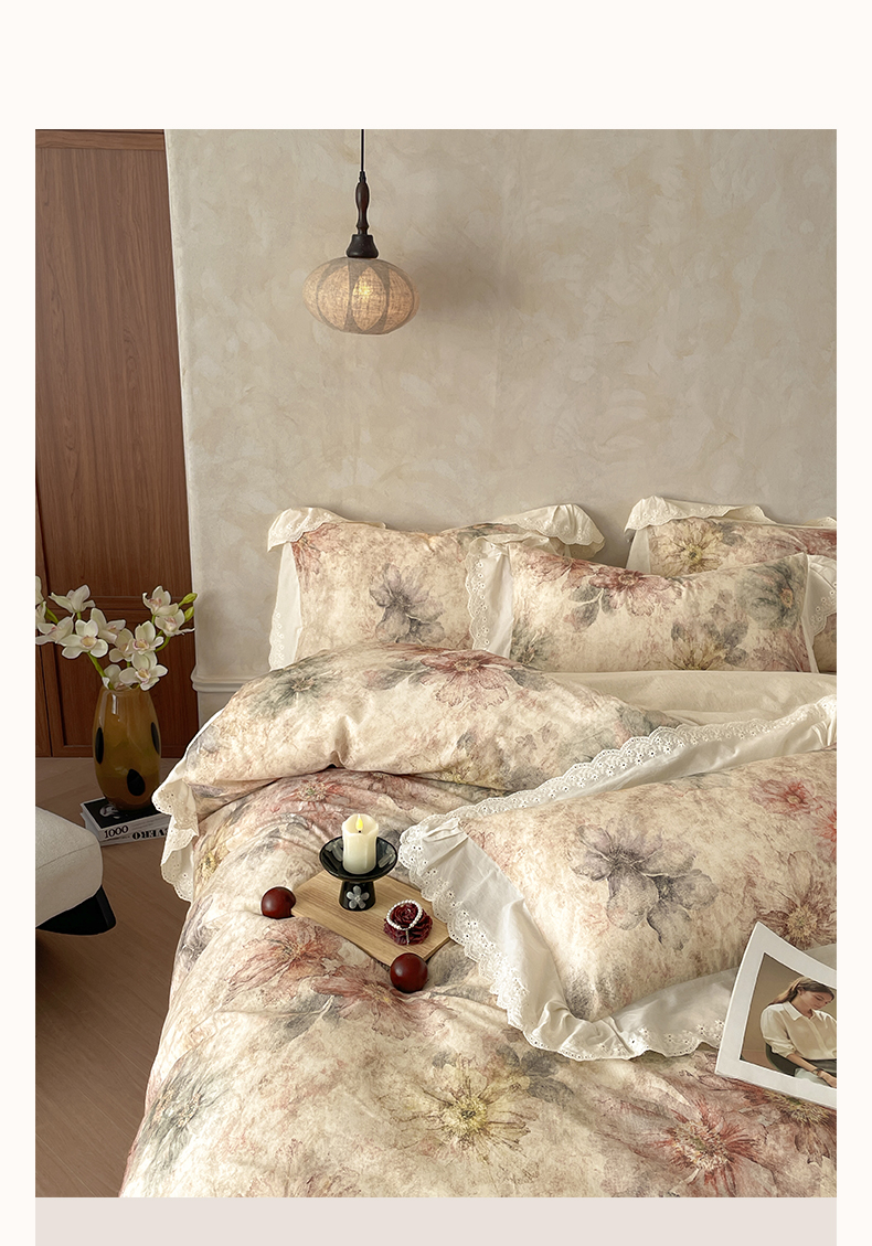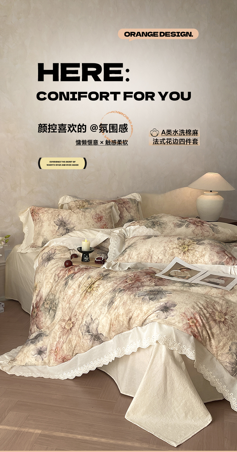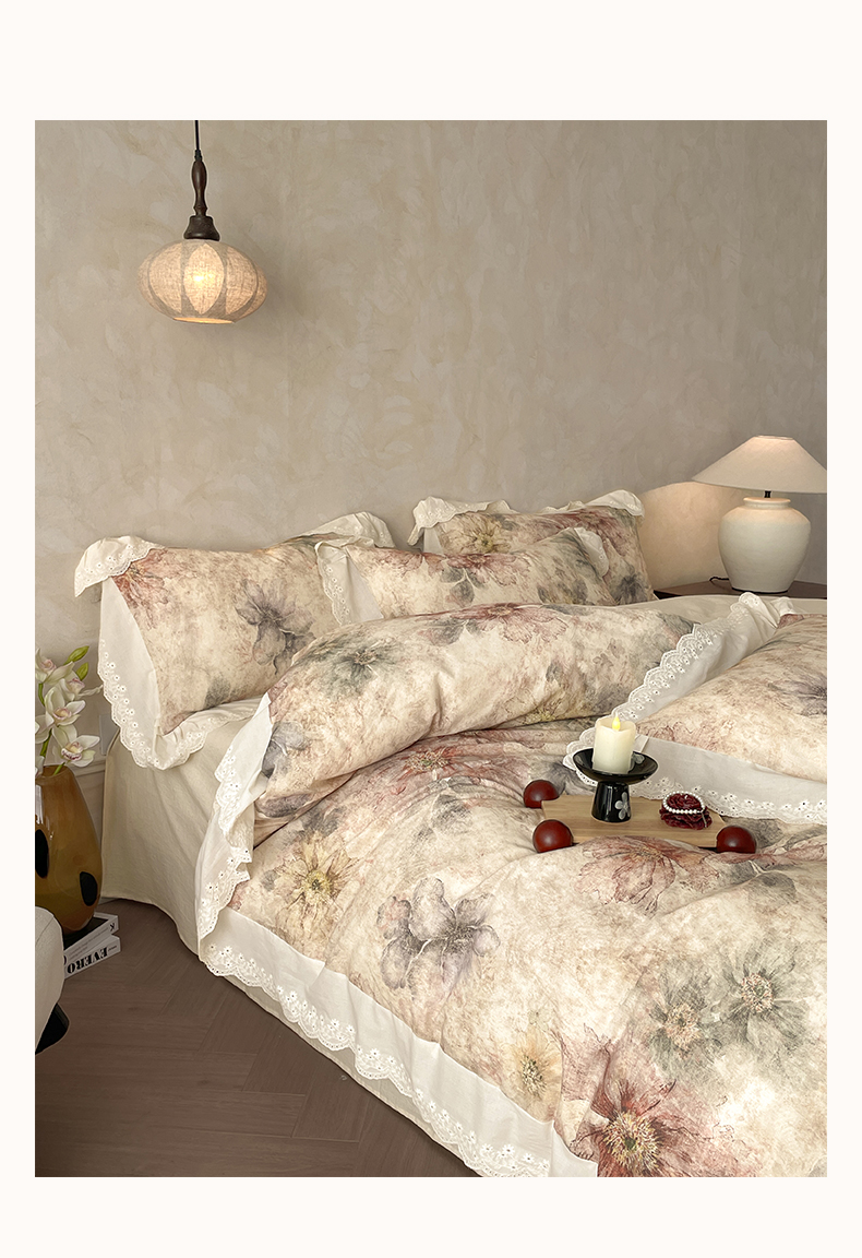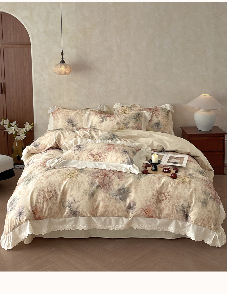 当前位置: 91家纺网 > 商品网购 > 床品套件 > 四件套 > 其它四件套 > 莱登卡奴 2026新款A类棉麻数码印花25%麻75%棉法式复古花边四件套 金彩漫花