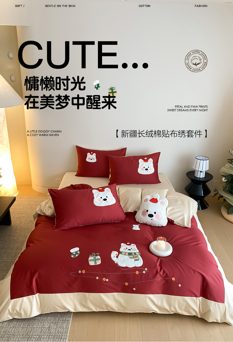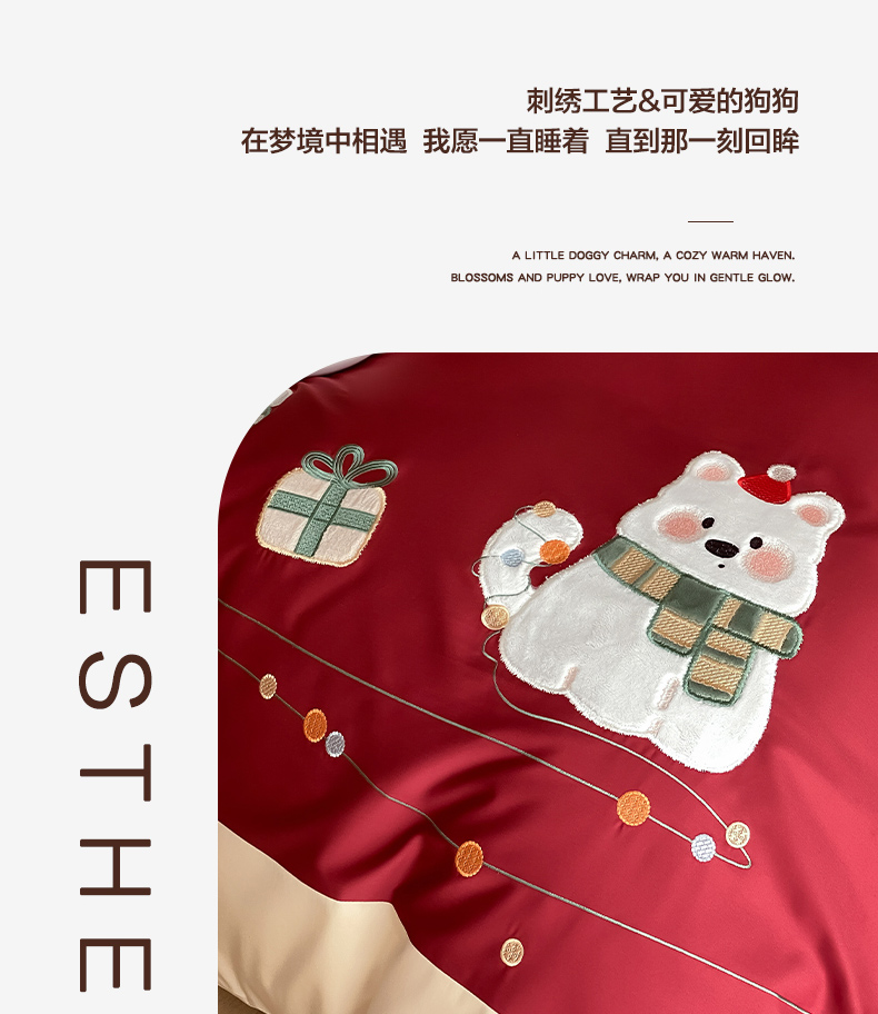(总)云栖家居 2026新款50支全棉100S卡通刺绣四件套-小狗团子