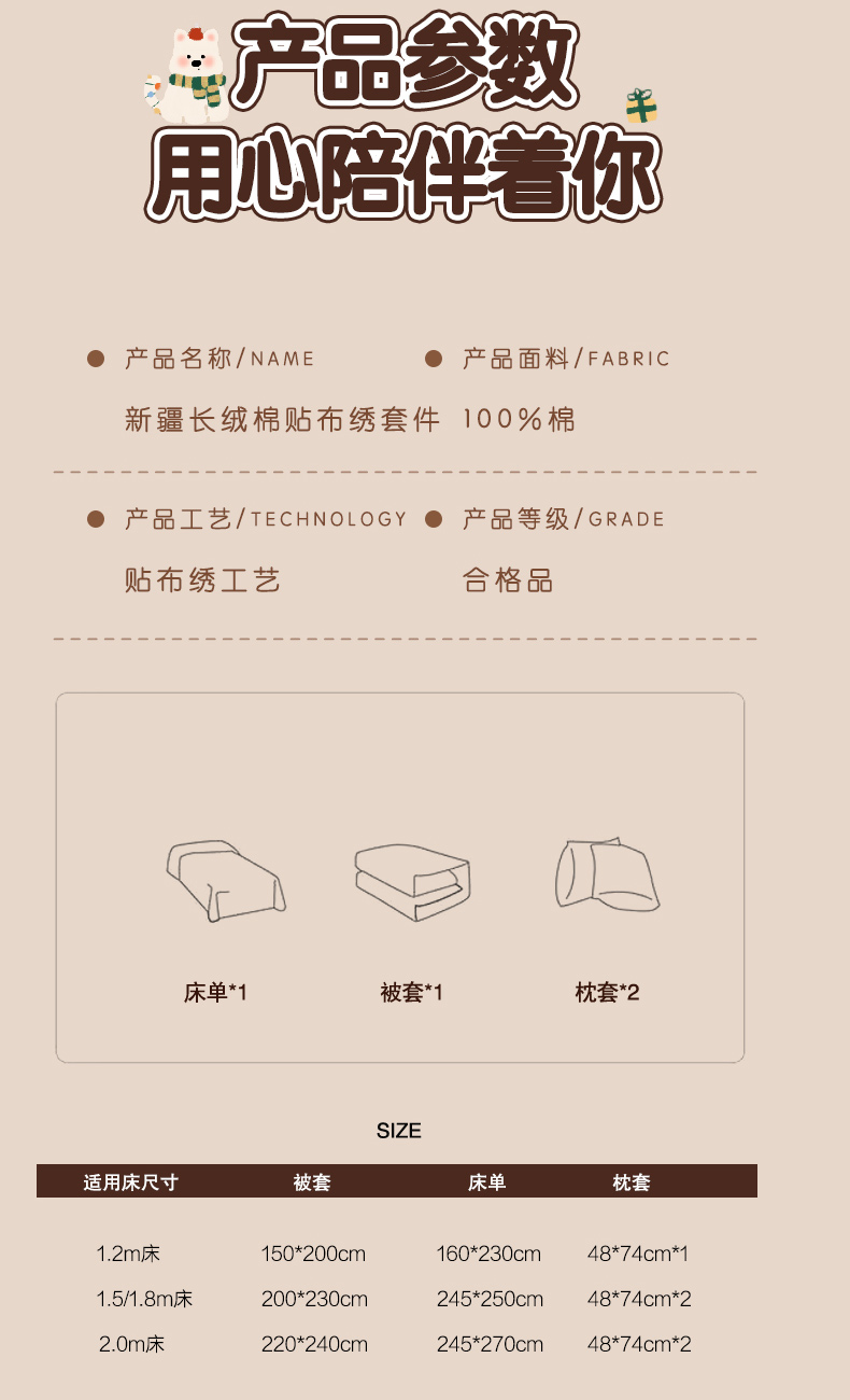 商品名称:(总)云栖家居 2026新款50支全棉100S卡通刺绣四件套-小狗团子