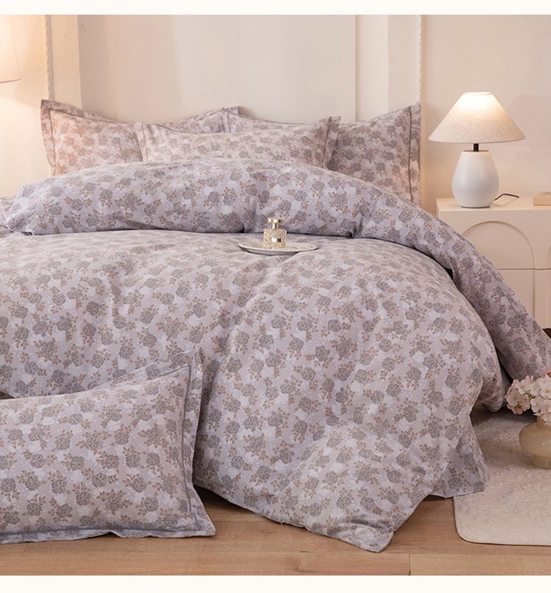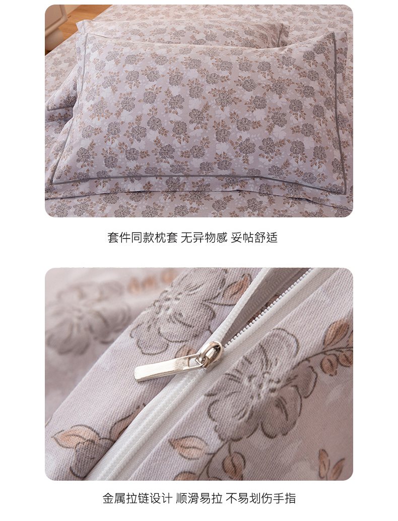 商品名称:磨毛世家家纺 2026新款铂金磨毛纯棉加厚全棉磨毛四件套 花团锦簇-灰