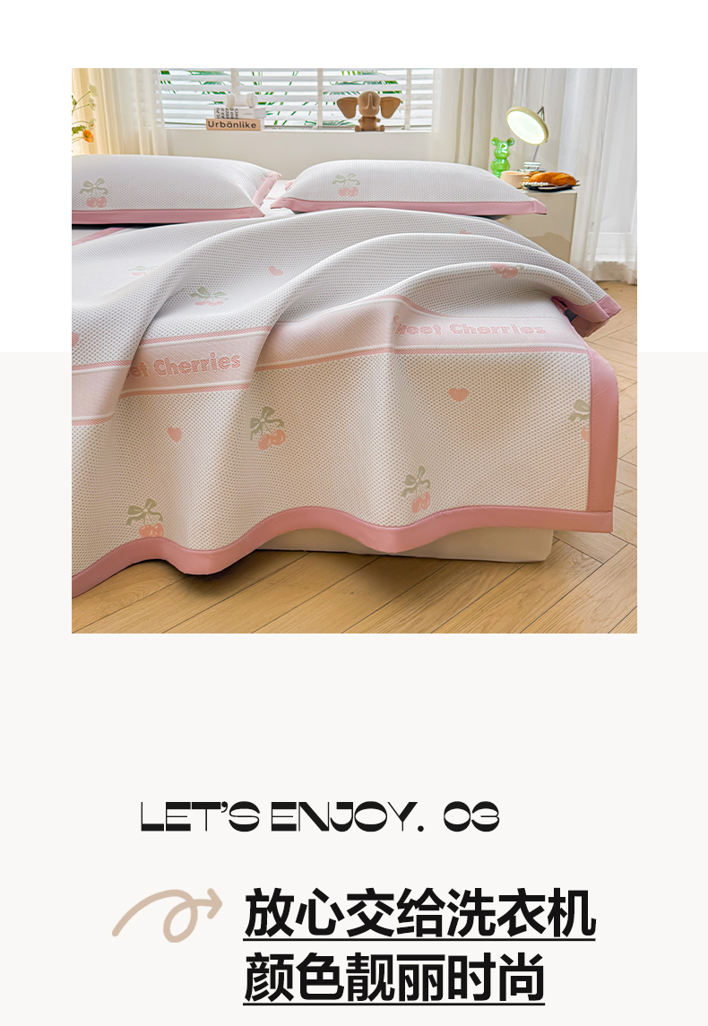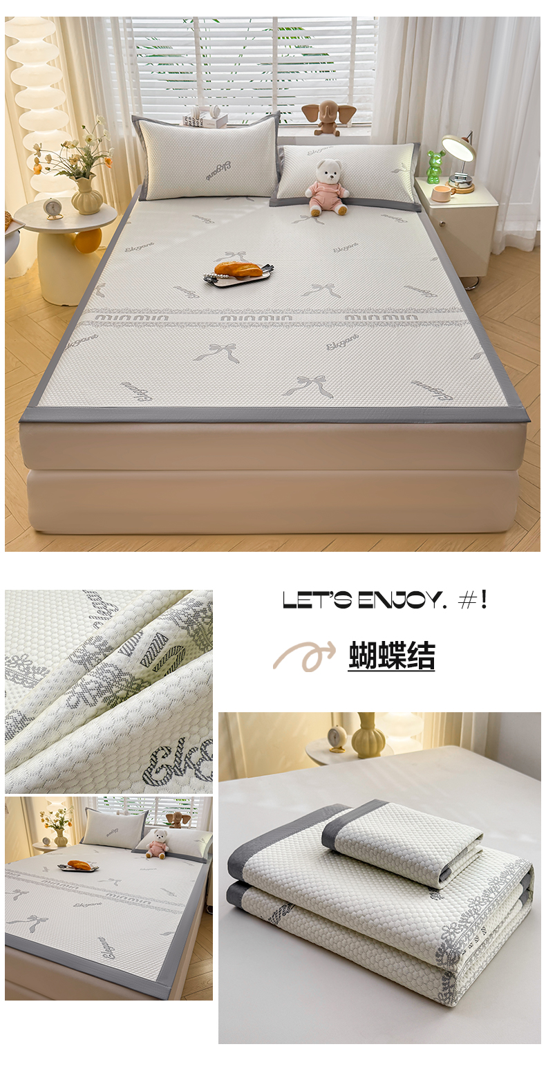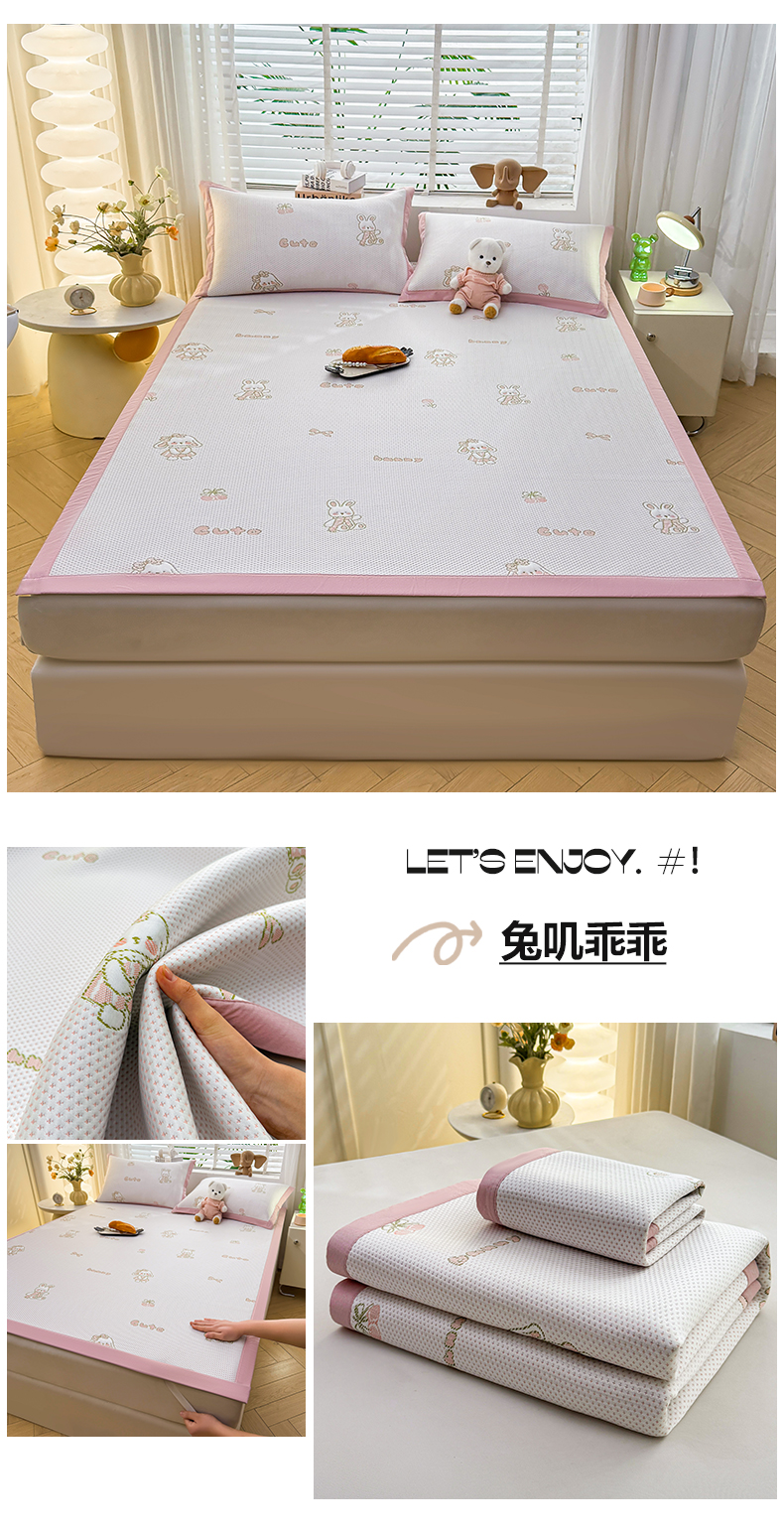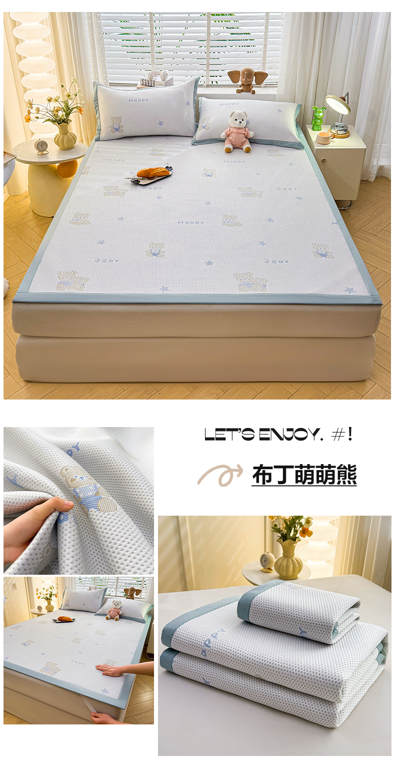 (总)凯罗 2026新款可水洗凉豆豆夏季席子凉席三件套,Hello--熊,爱心小熊--浅粉,敦敦熊--浅粉,敦敦熊--蓝灰,爱心小熊-咖,花儿朵朵--浅粉