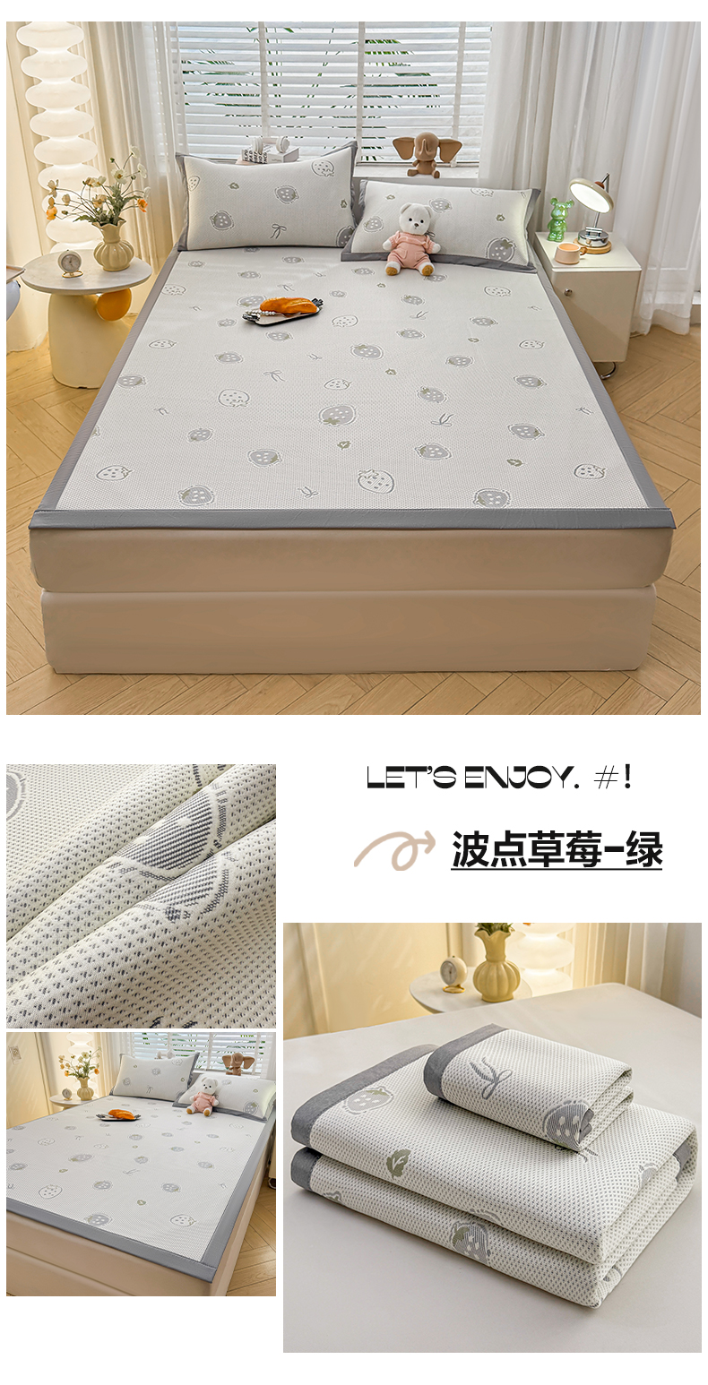 (总)凯罗 2026春夏凉豆豆小红书爆款A类乙纶PE凉豆豆床席款可水洗床席,波点草莓-粉,布丁萌萌熊,小萌狗,小南瓜-桔