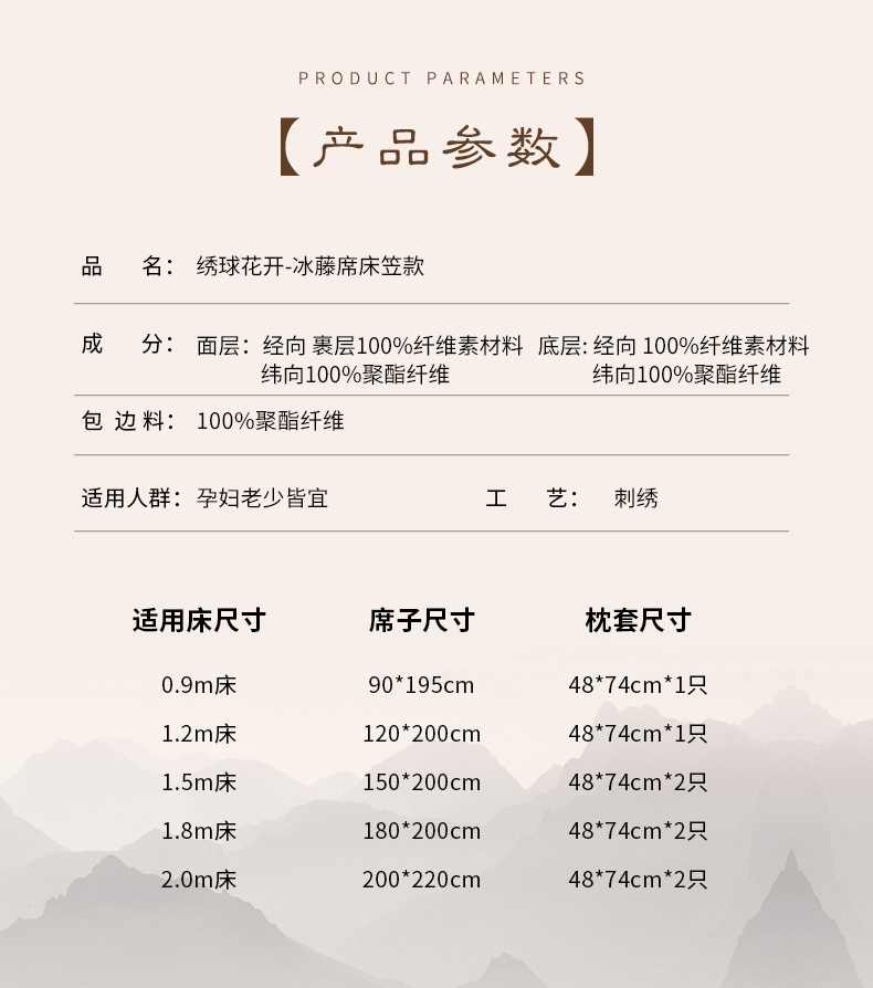 当前位置: 91家纺网 > 商品网购 > 床上用品 > 凉席 > 凉席套件 > 小牛席业 2026新款绣球花开-冰藤双面席系列(床笠款)凉席藤席冰藤席竹席空调席草席冰丝席豆豆席乳胶席三件套 绣球花开-冰藤床笠款(银灰)
