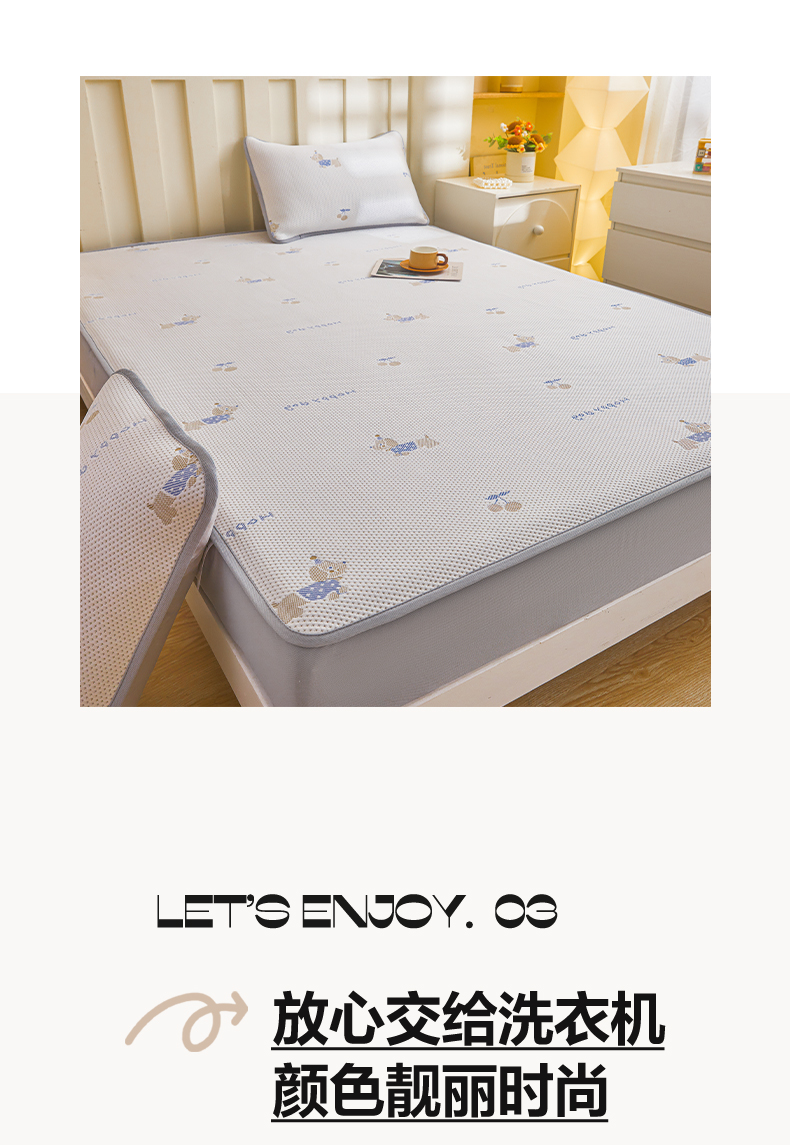 (总)凯罗 2026新款可水洗凉豆豆夏季席子凉席三件套,Hello--熊,爱心小熊--浅粉,敦敦熊--浅粉,敦敦熊--蓝灰,爱心小熊-咖,花儿朵朵--浅粉