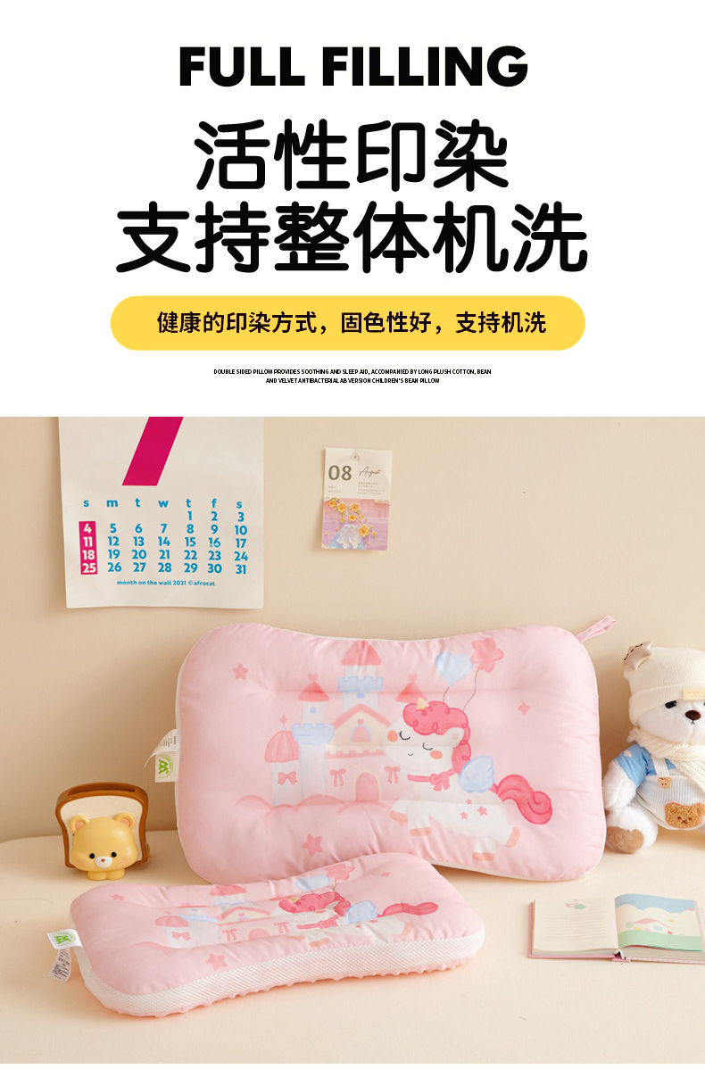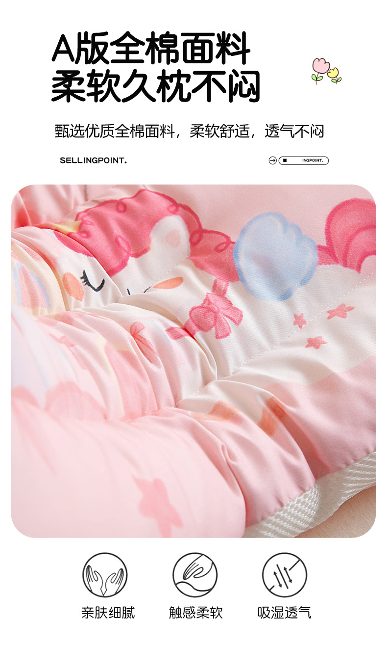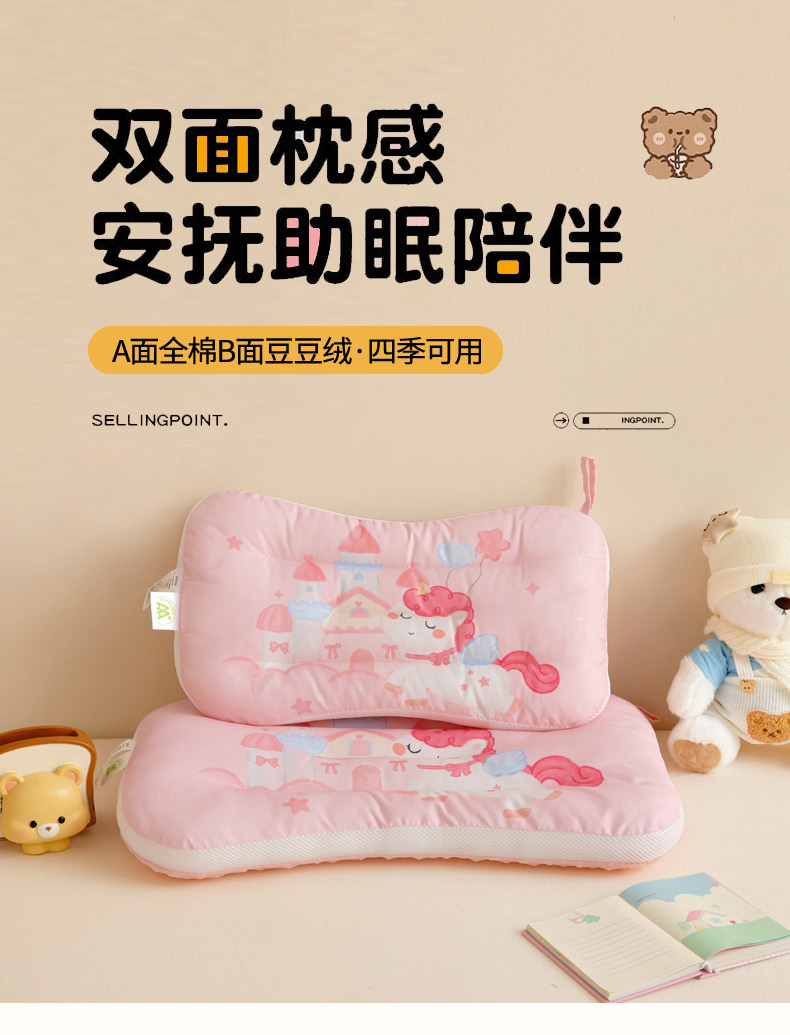 商品名称:鱼宝 2026新款A类全棉40S数码印花原创大版卡通豆豆枕枕头枕芯 小马城堡