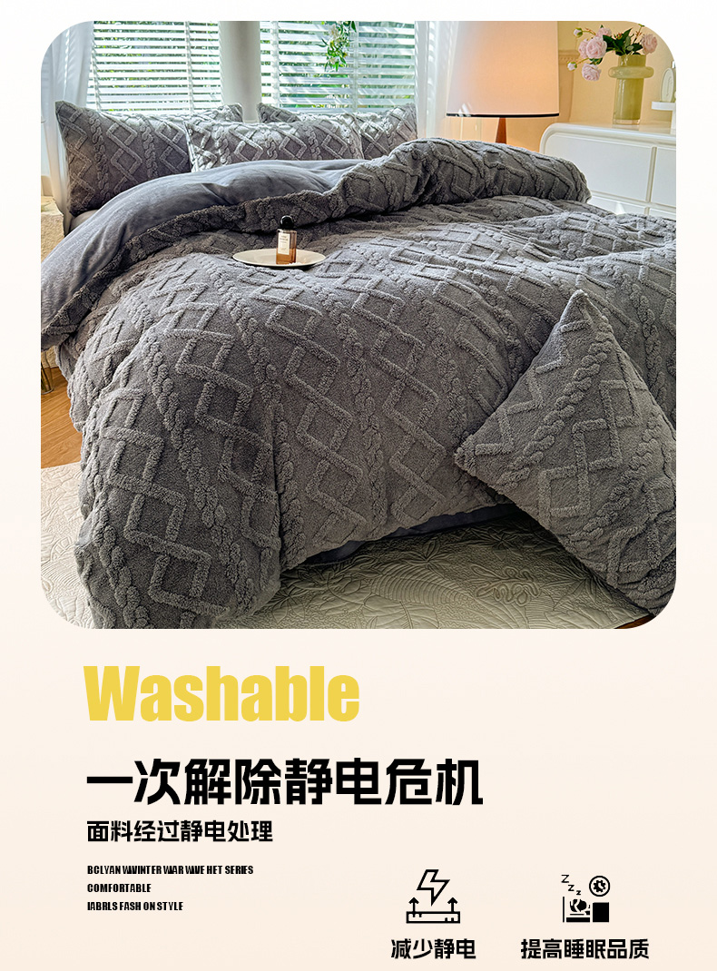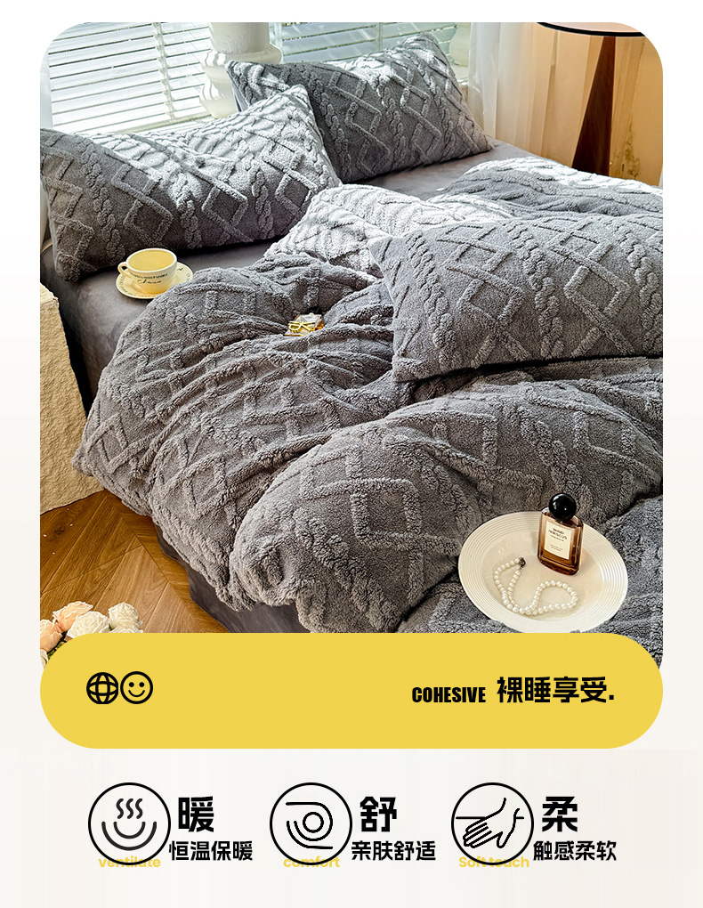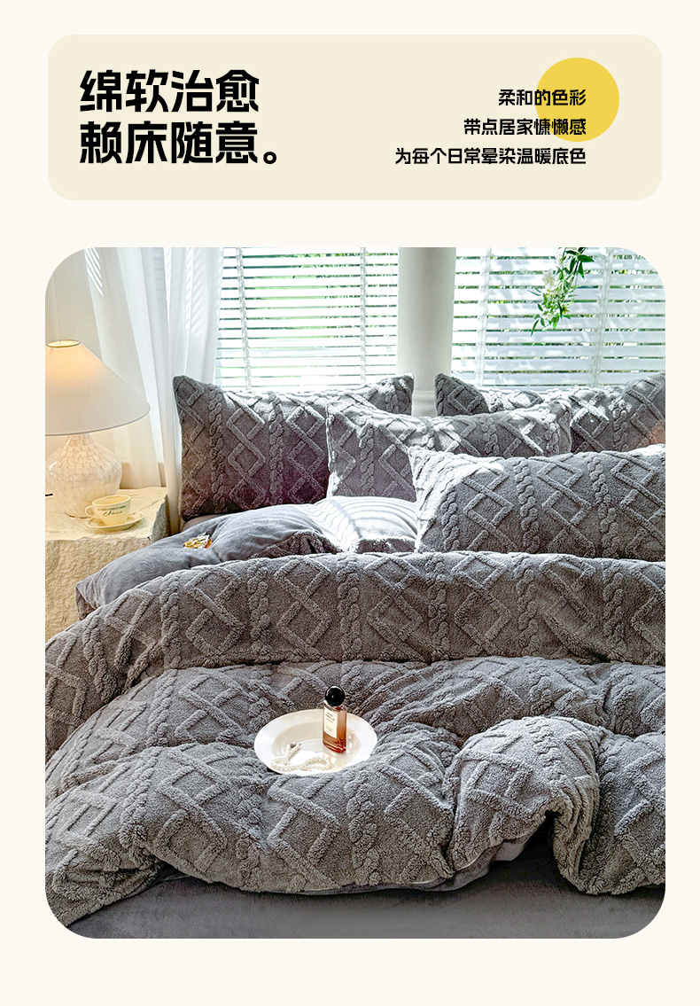 当前位置: 91家纺网 > 商品网购 > 床品套件 > 四件套 > 牛奶绒四件套 > 沐珩家纺 2026新款亲肤舒适加厚保暖塔芙绒牛奶绒系列四件套 珊瑚灰