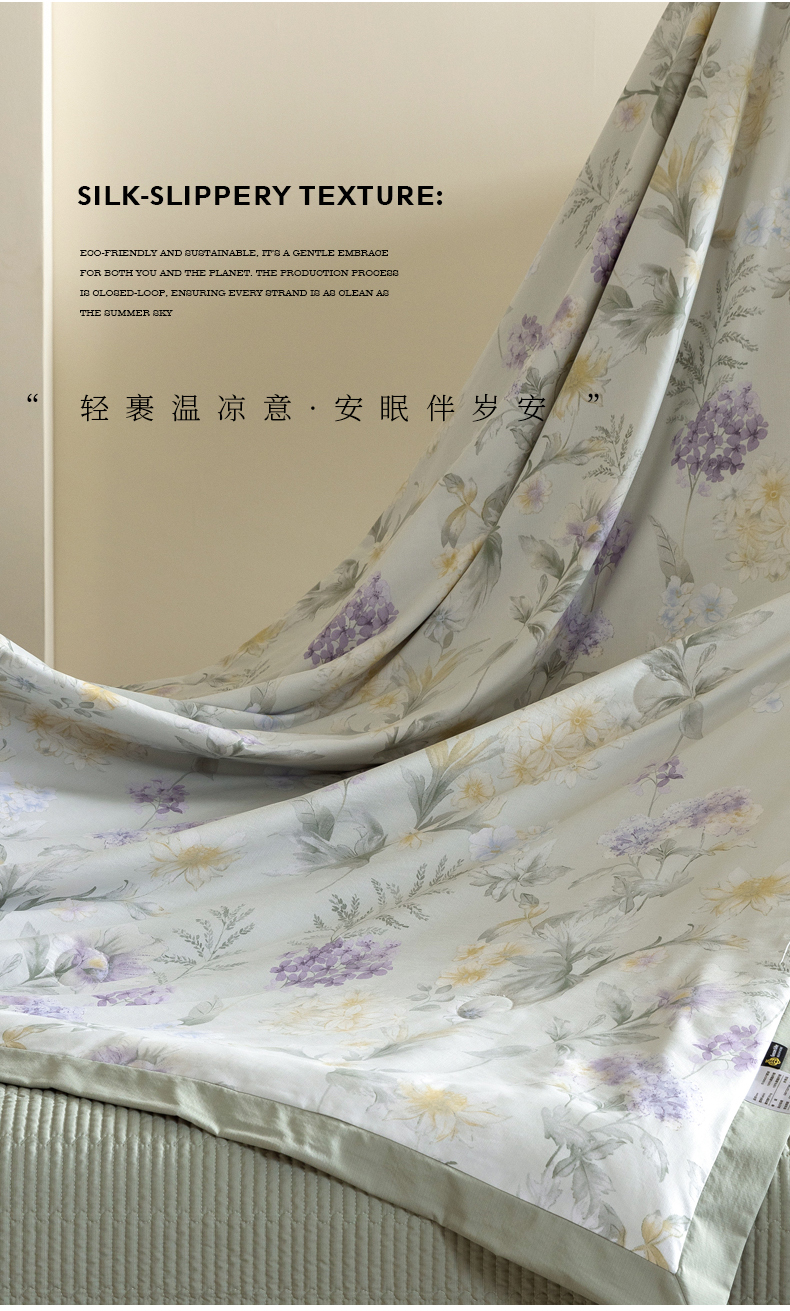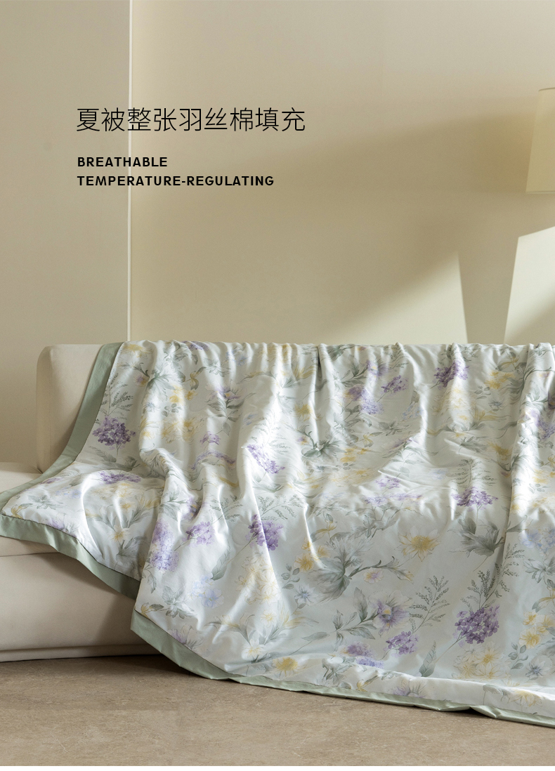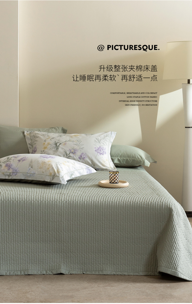 • 91家纺网 家纺一手货源 找家纺 立奥被业 2026新品冰丝棉夏被四件套竹节纱夏被四件套 静籁之息-绿