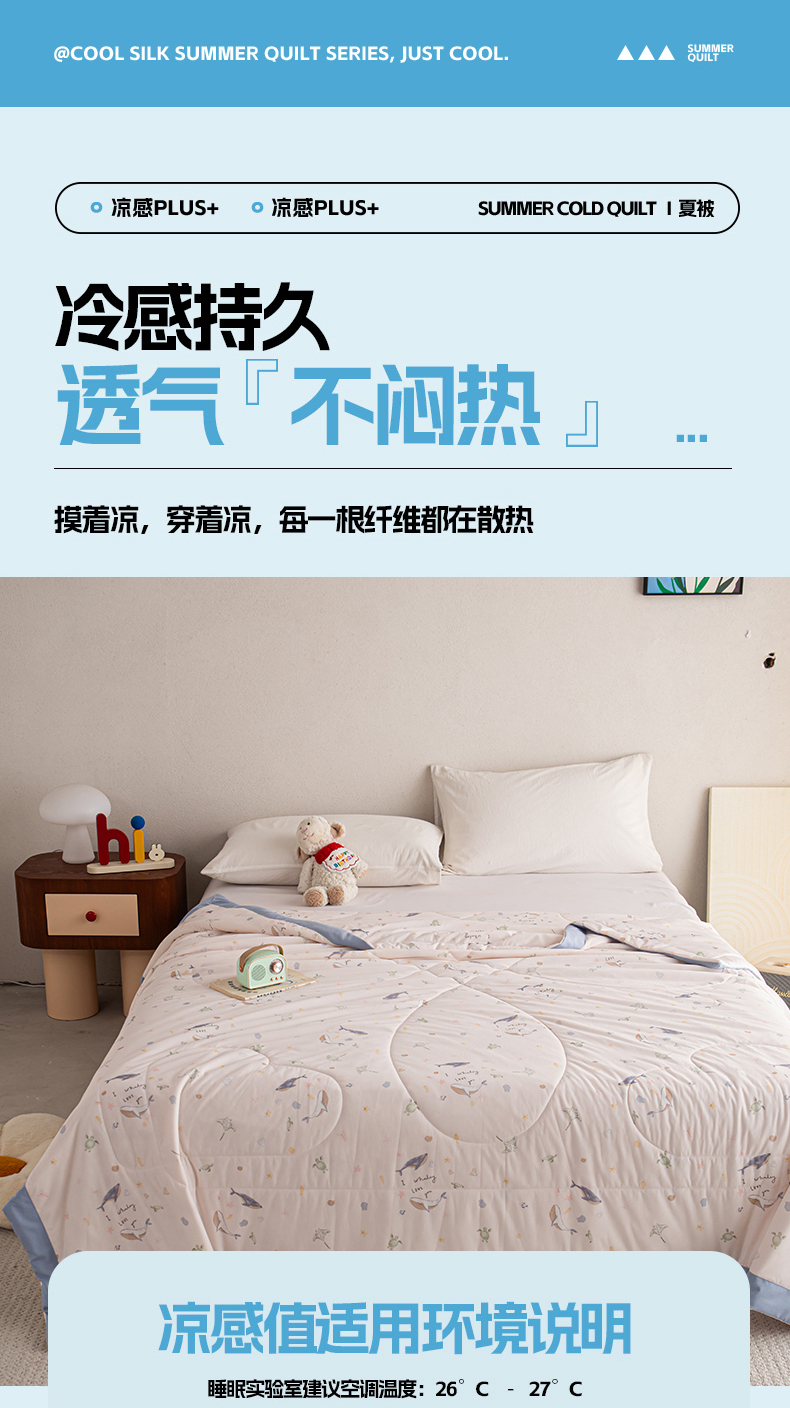 商品名称:亿莱鑫 2026新款手包边凉感抗菌夏凉被空调被 海洋乐园