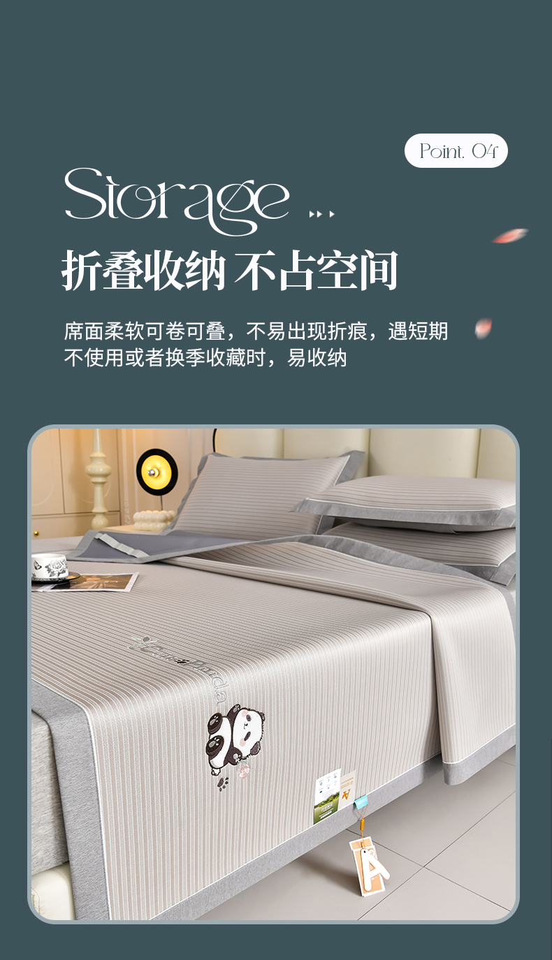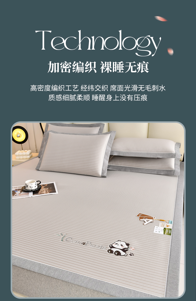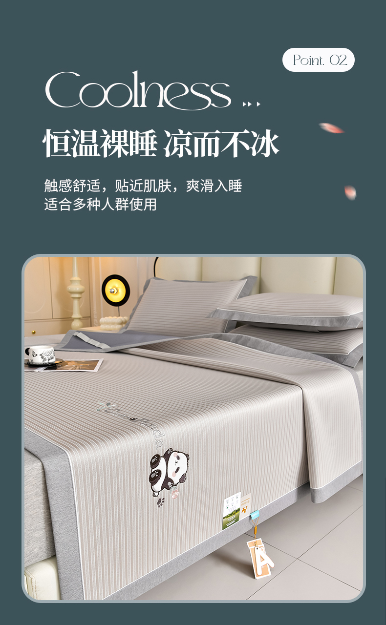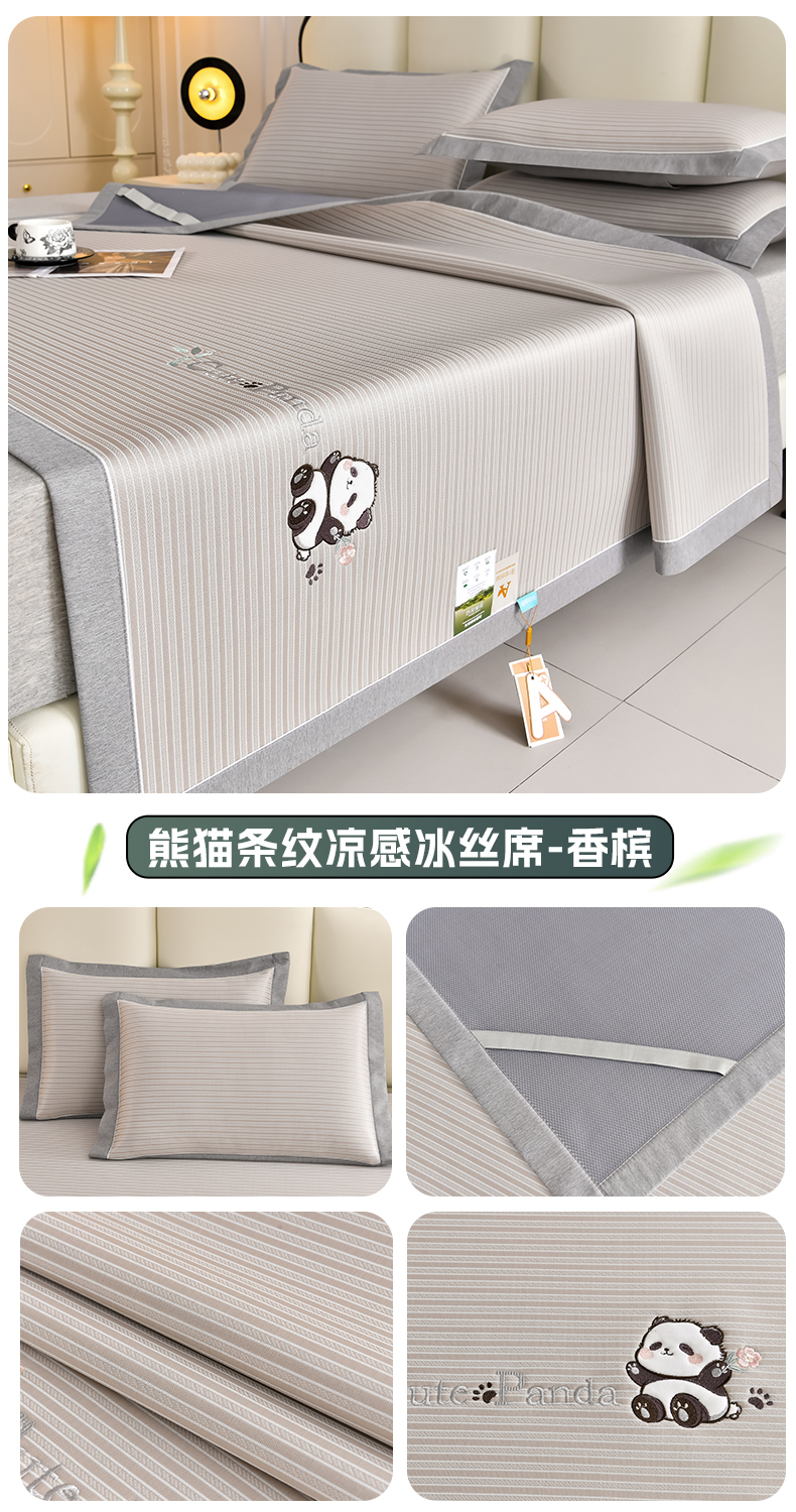 商品名称:小牛席业 2026新款经典条纹熊猫凉感冰丝席凉席席子 系列 香槟