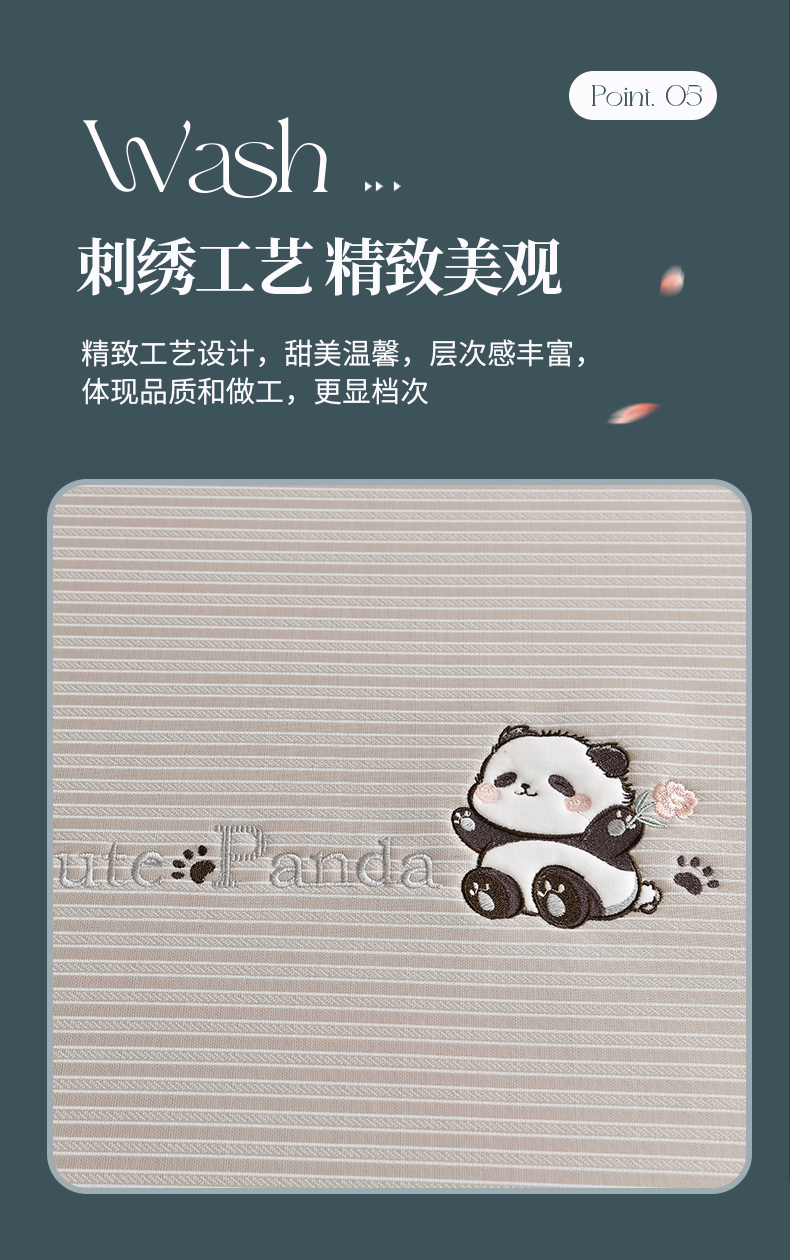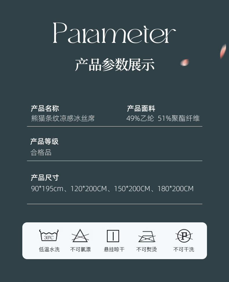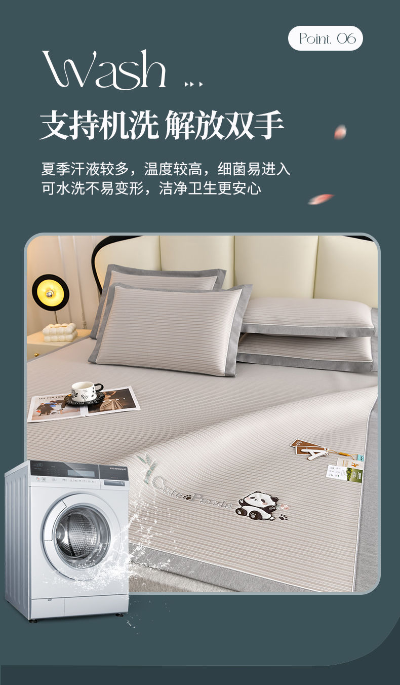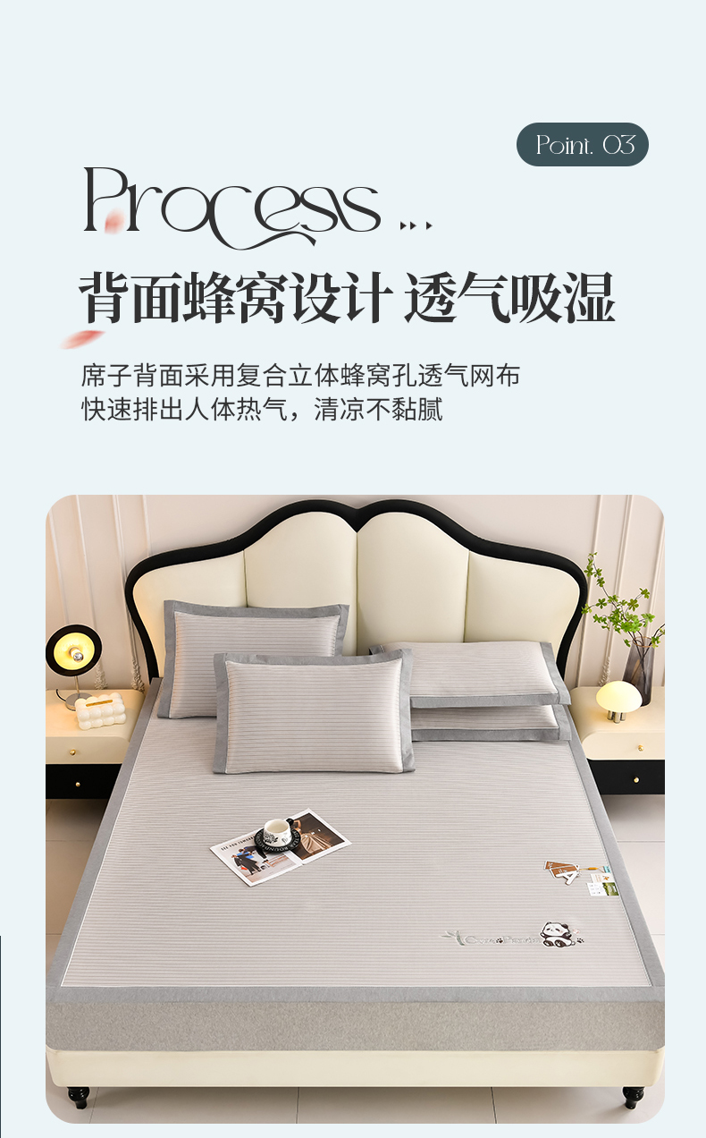 商品名称:小牛席业 2026新款经典条纹熊猫凉感冰丝席凉席席子 系列 香槟