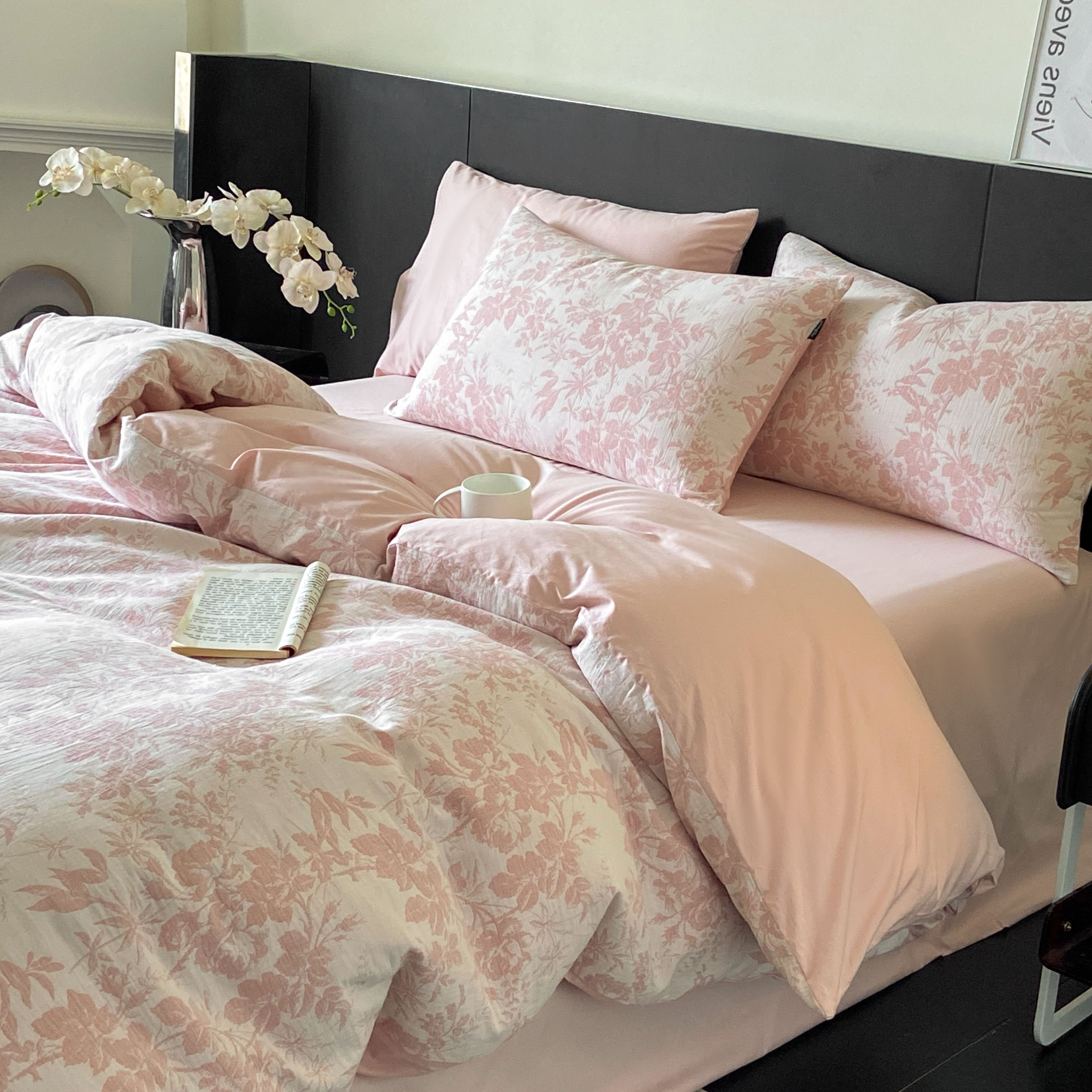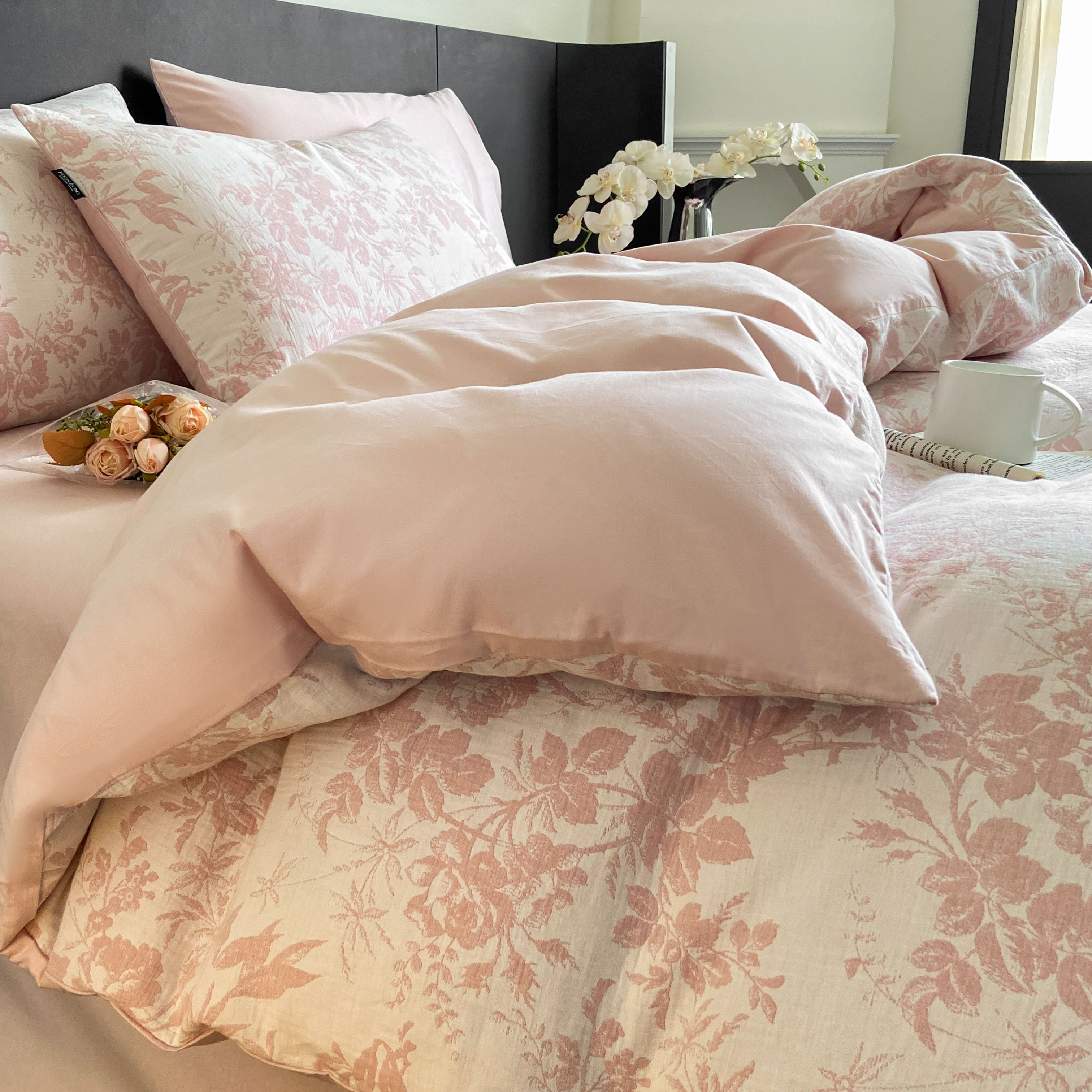 商品名称:宜代光年 2026新款60S水洗棉全棉纯棉三层纱色织提花单被套被套单件 海棠