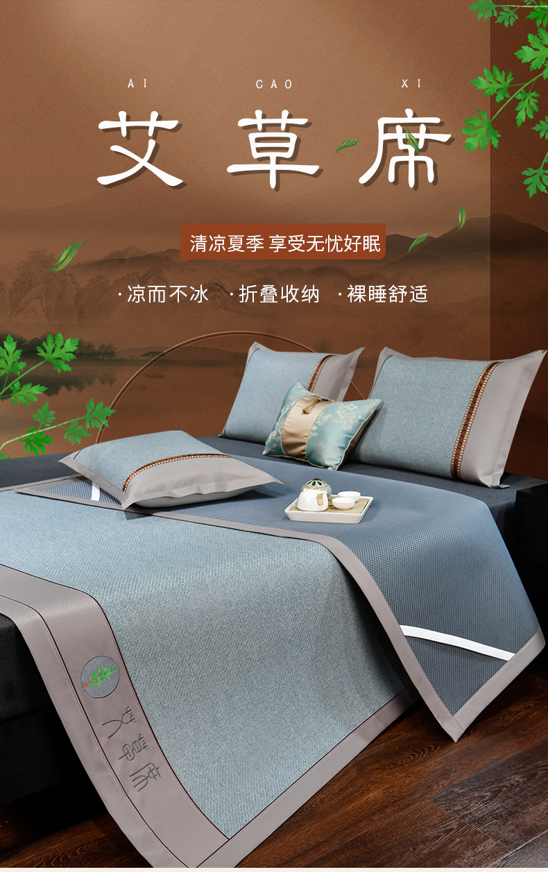 当前位置: 91家纺网 > 商品网购 > 床上用品 > 凉席 > 其他凉席 > 小牛席业 2026新款加厚款-经典艾草养生席系列 艾草席-冰蓝(新角度)