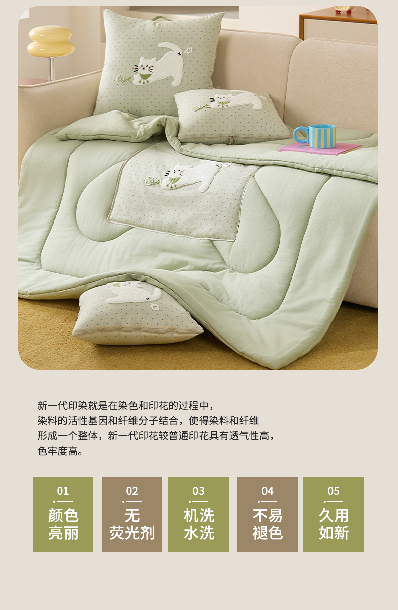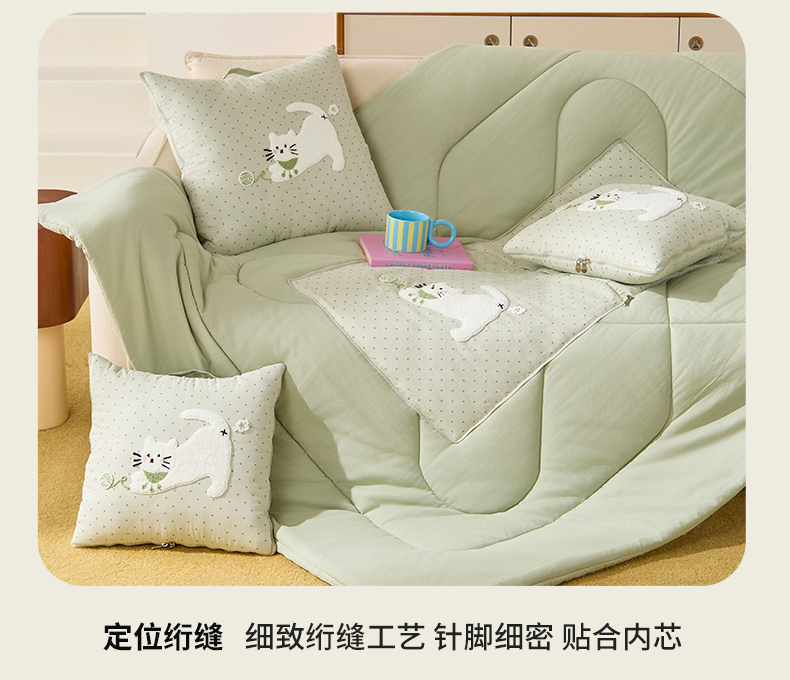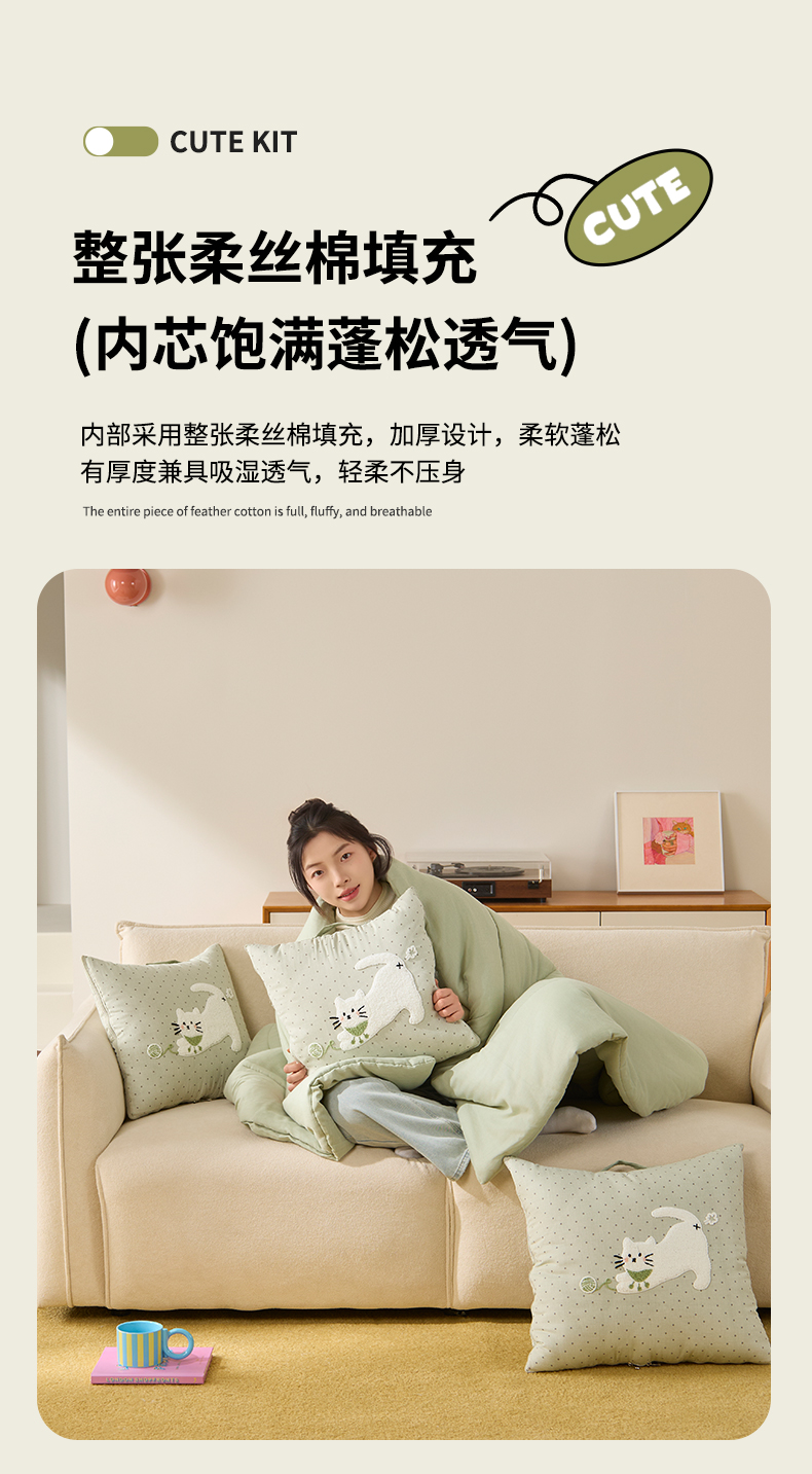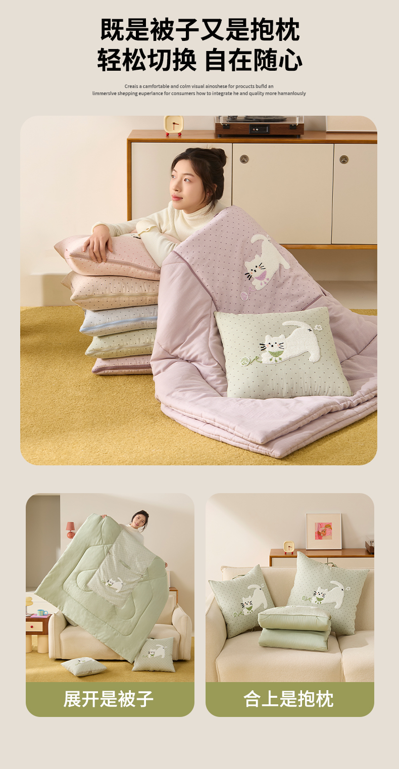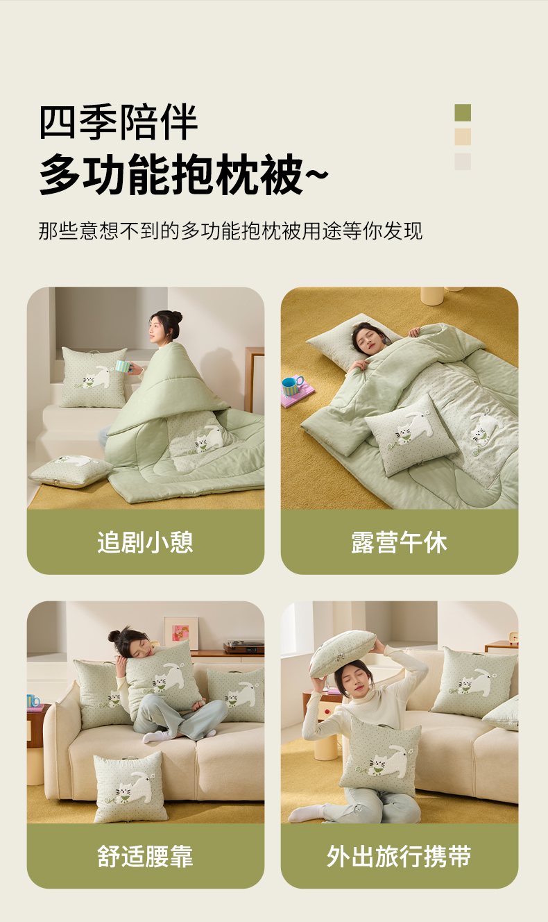 (总)多米家居 2025新款多功能印花嗖系抱枕被,暗苔绿,丹宁蓝,矿石黑,小鸡黄,杏仁咖,云水灰