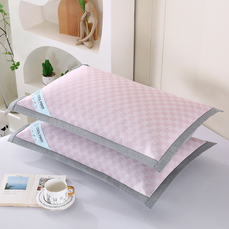 小牛席业 2025新款棋盘格冰丝夏凉枕套凉席藤席冰藤席冰丝席草席竹席枕套 粉色